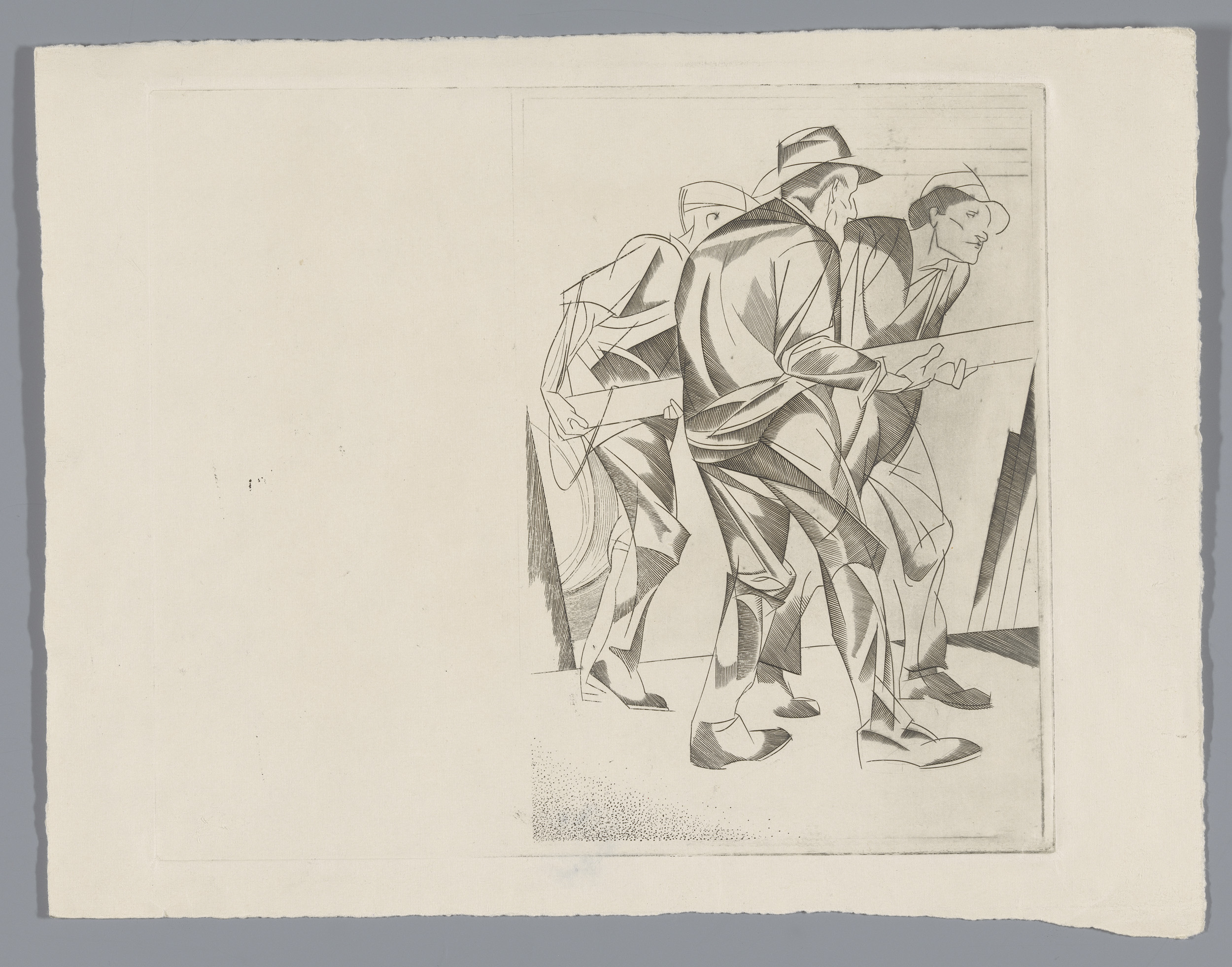 Drie arbeiders dragen een balk