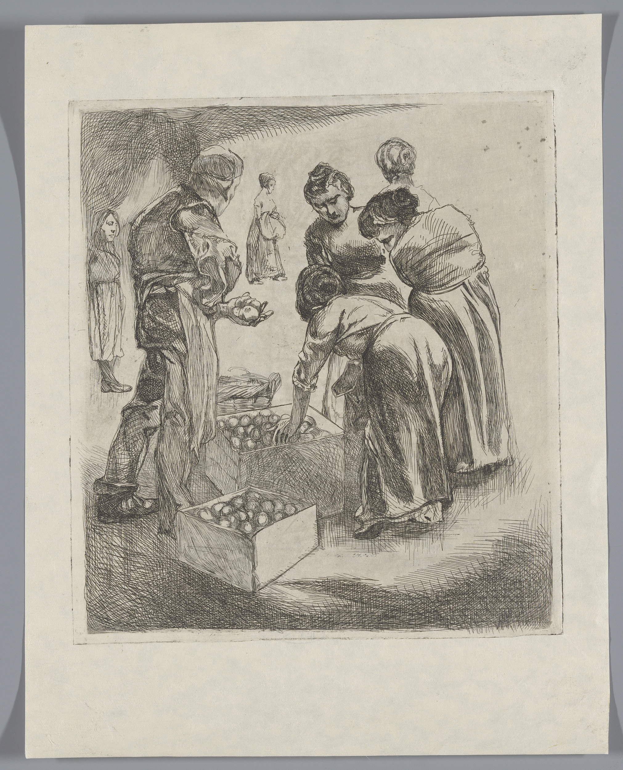 Marktscène met fruitverkoper