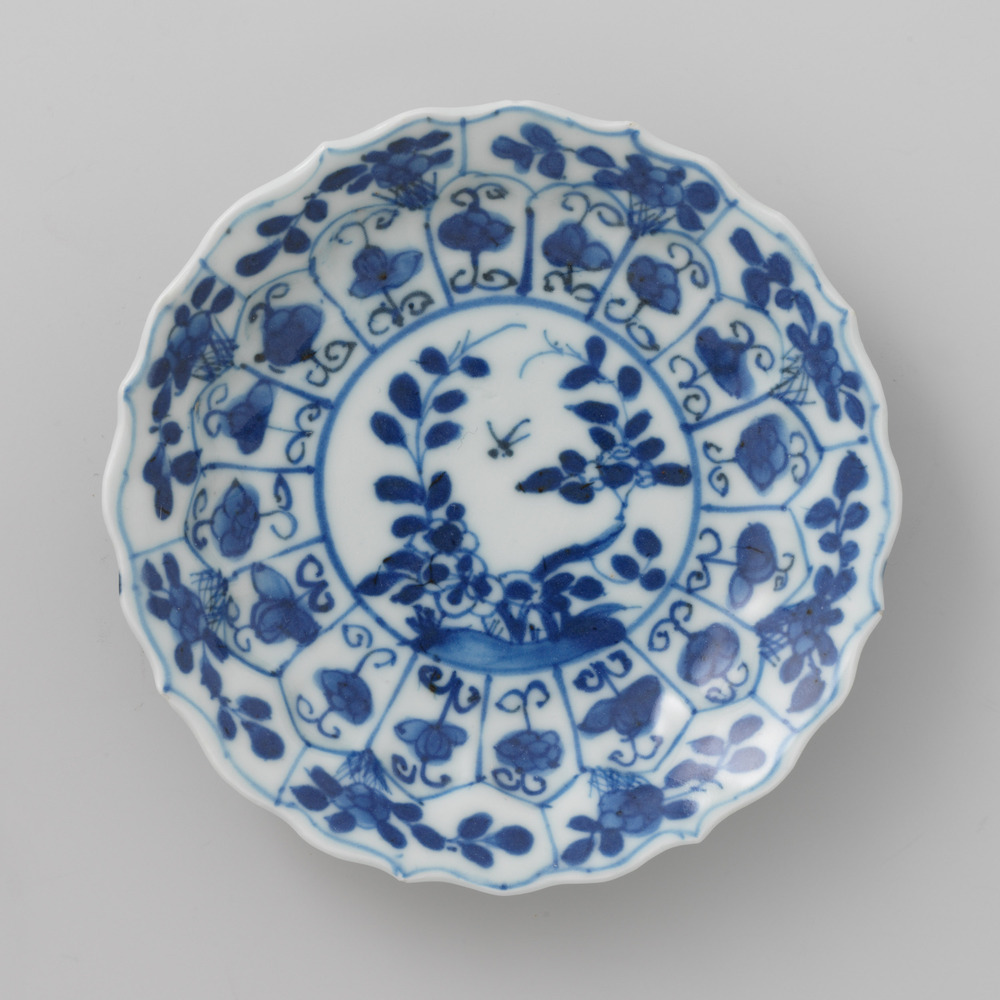 Waaierschotel van aardewerk, geglazuurd, met voorste...