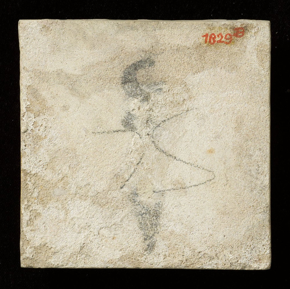tegel van aardewerk met tinglazuur, voorstellende: r...