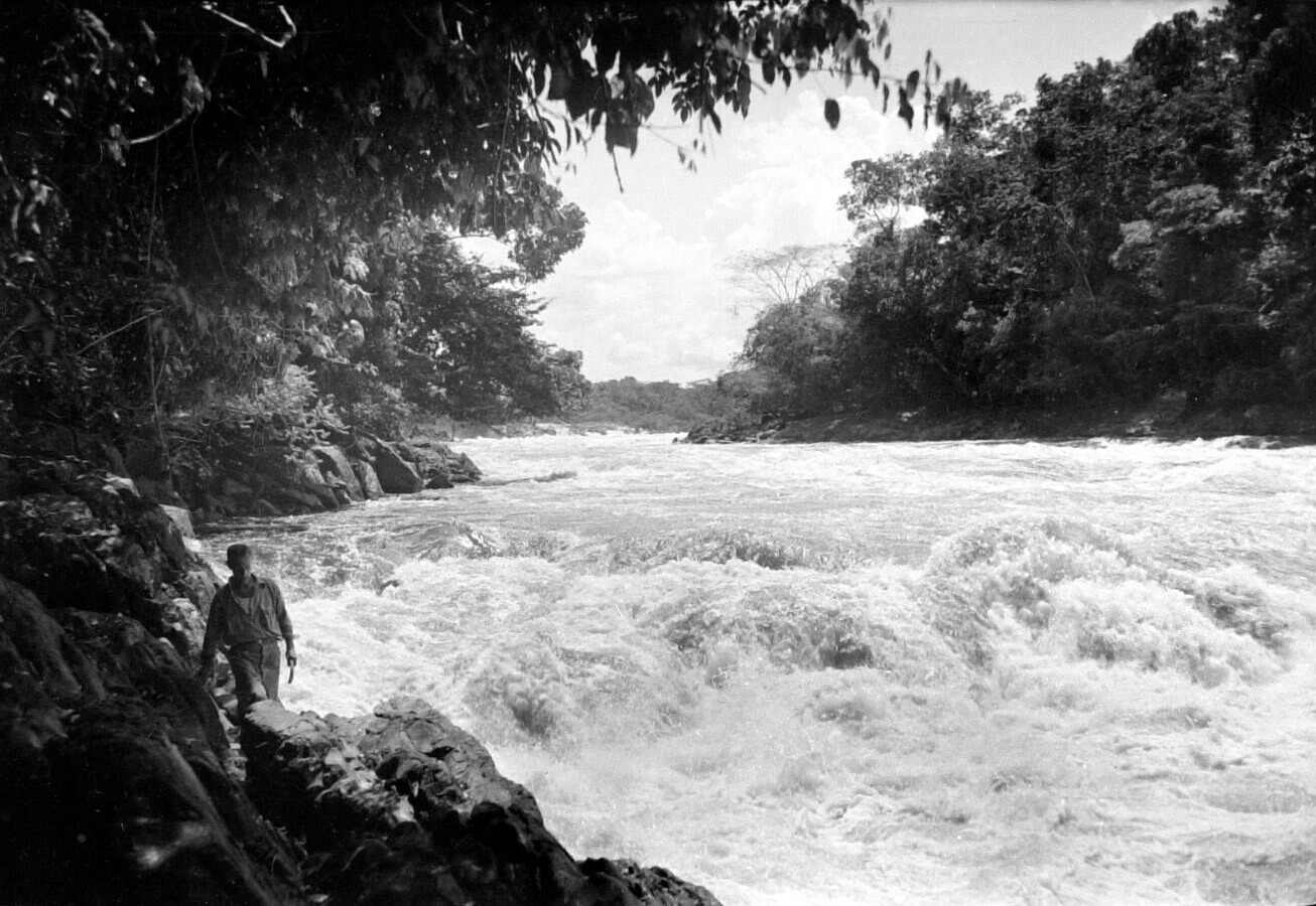 Arbeiderskampjes boven de vallen.