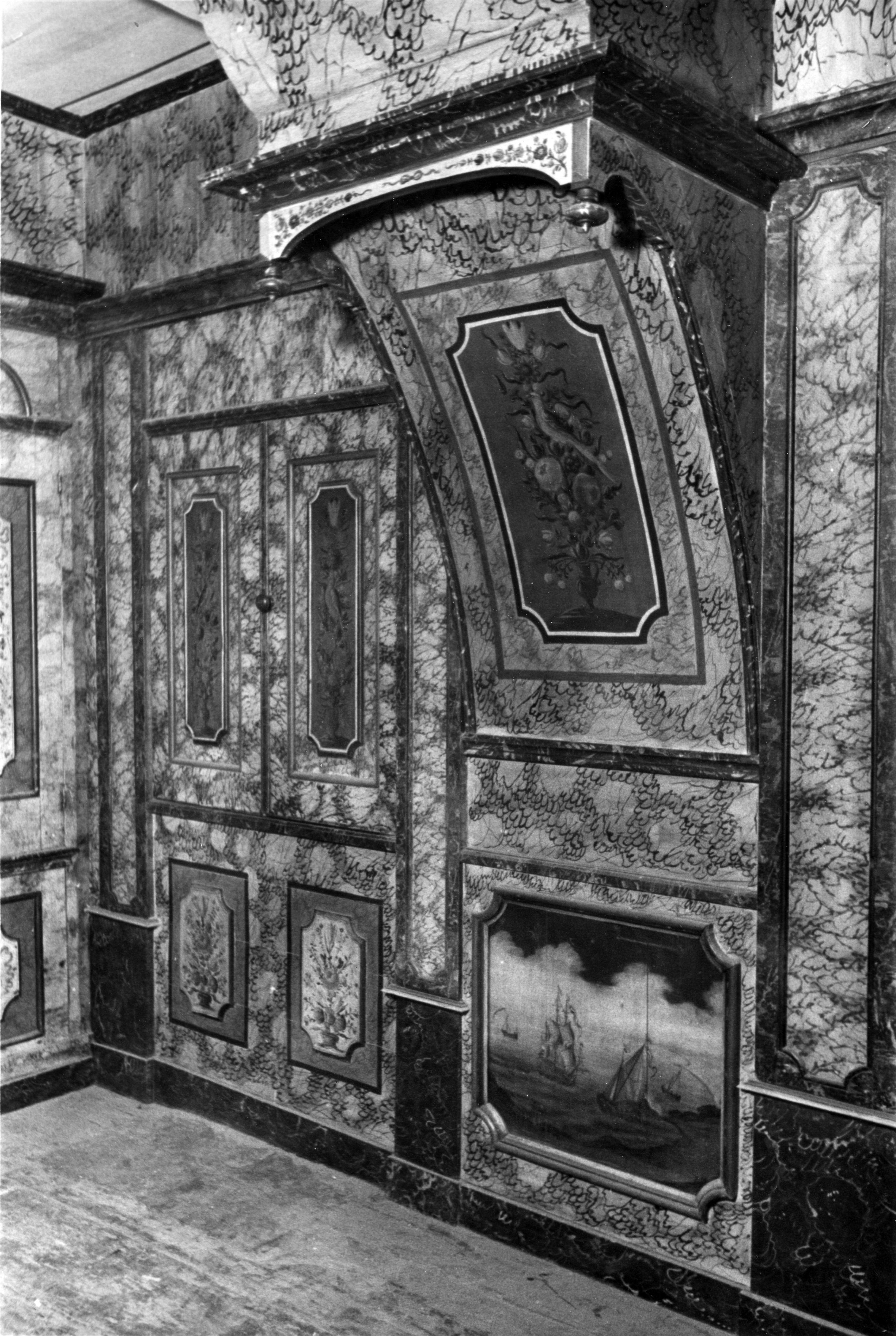 Wandbeschildering, Hindeloopen, 1943 (zwart-wit foto)