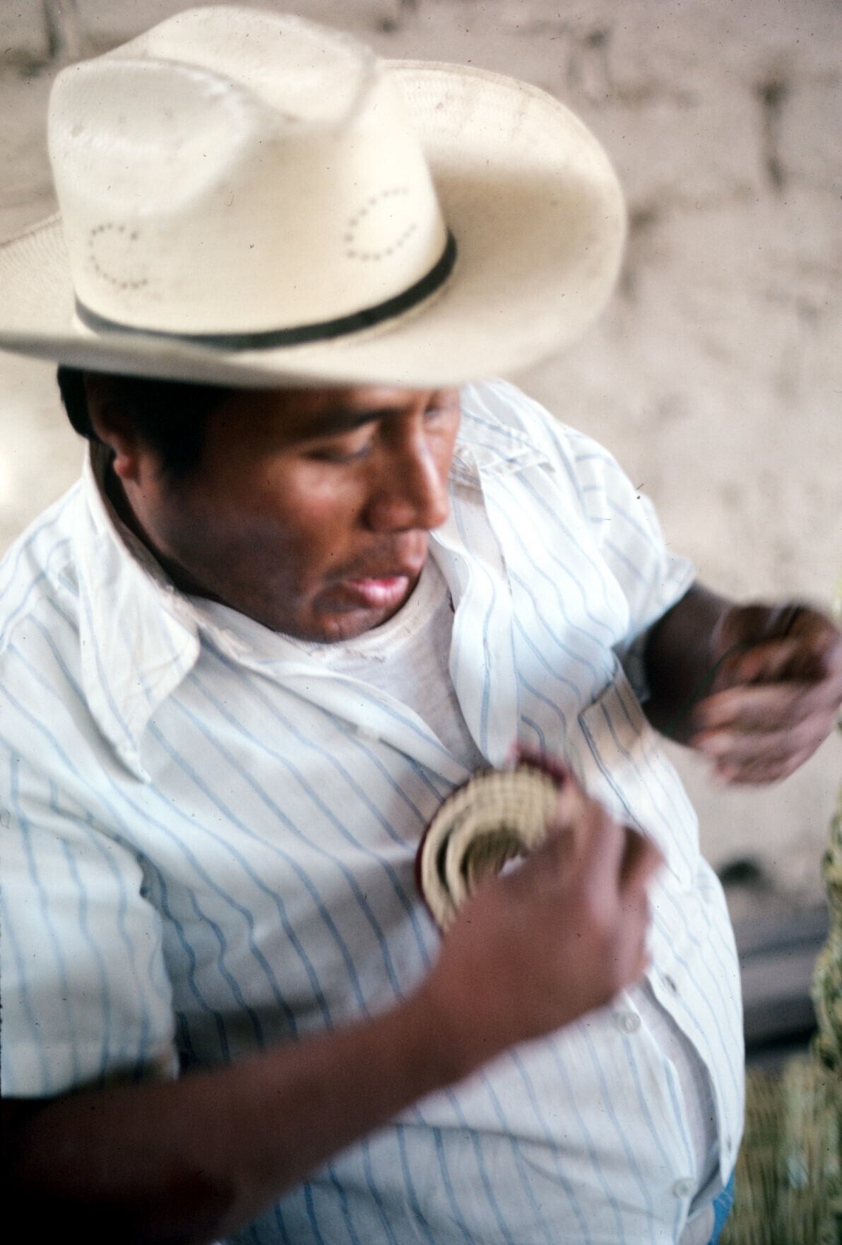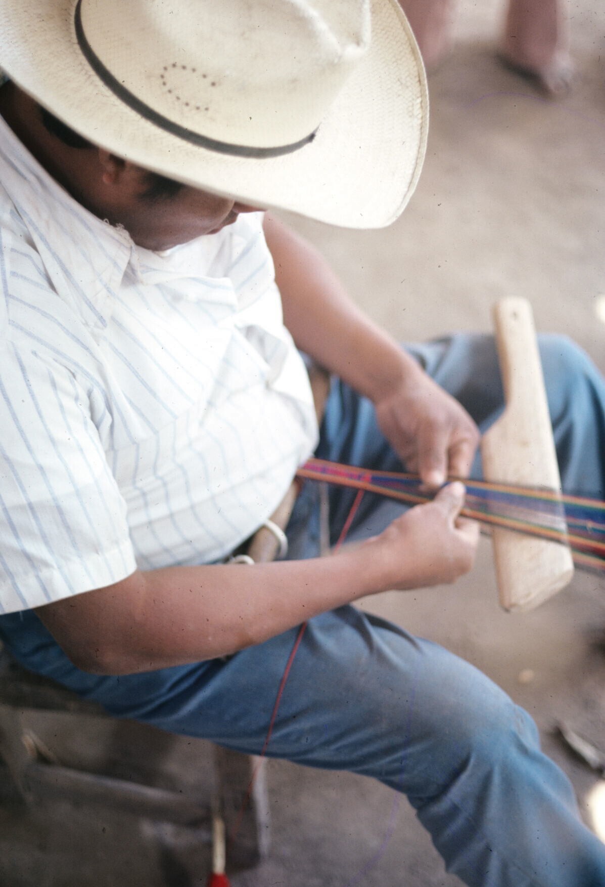 wever José Alfaro, zoyate (palmvezelceintuur) aan fa...