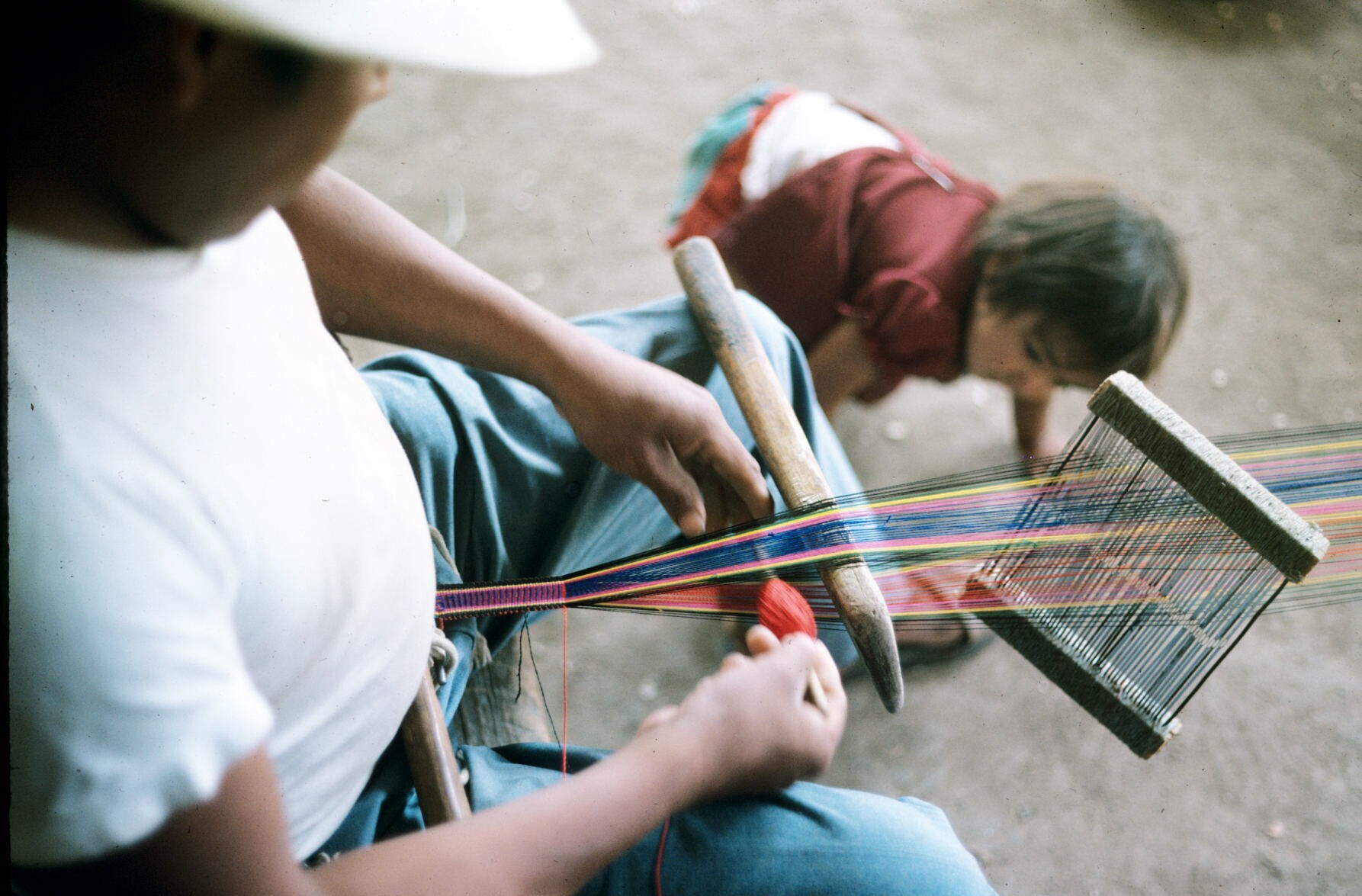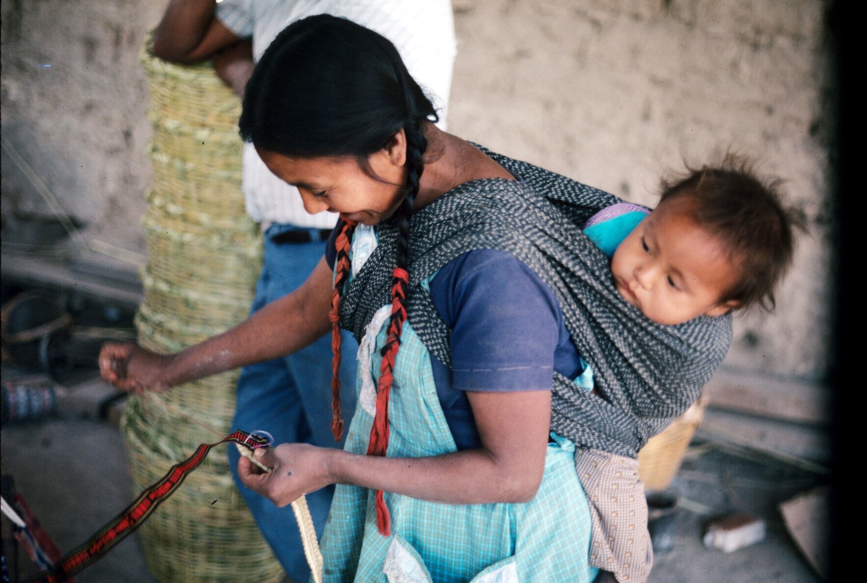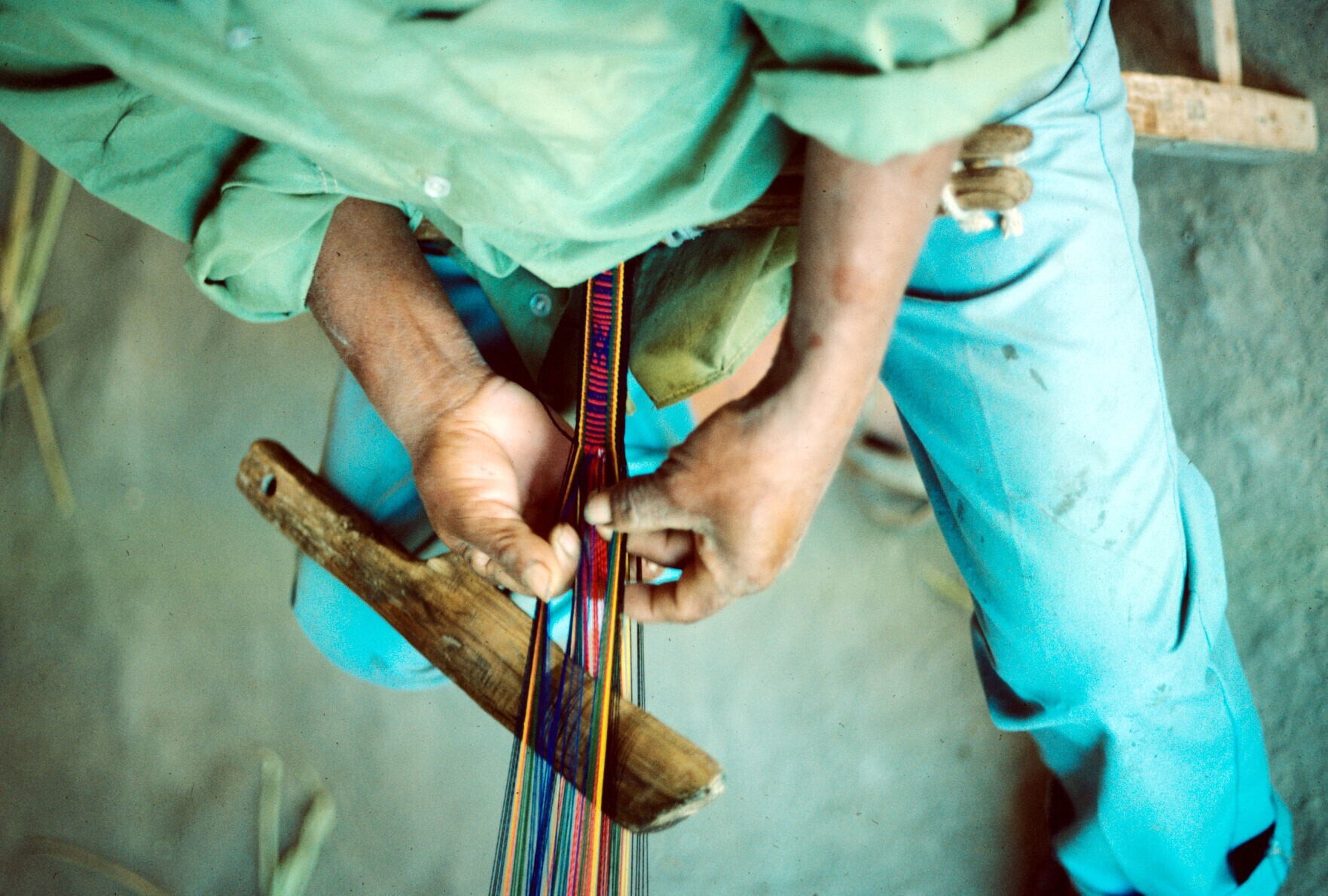 zwager van José Alfaro met heupweefgetouw, met zojui...