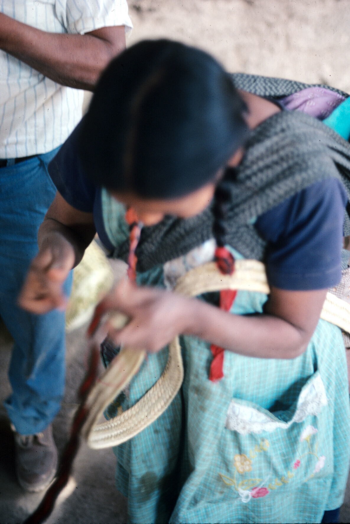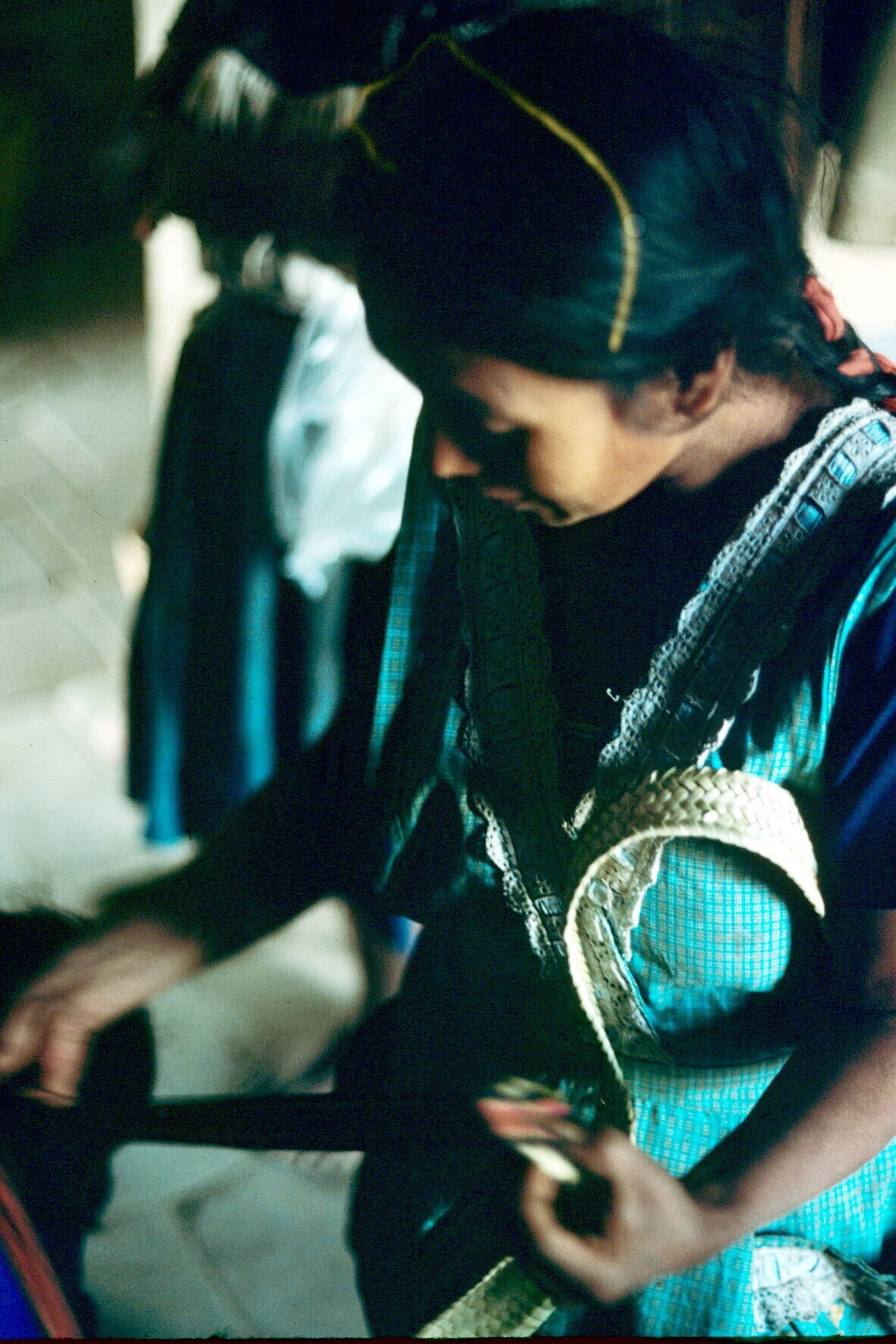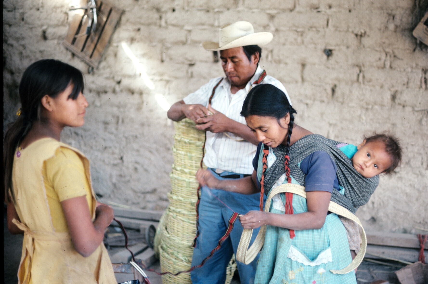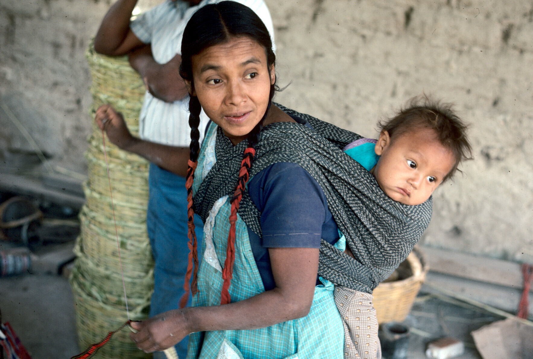 zwager van José Alfaro met heupweefgetouw, met zojui...