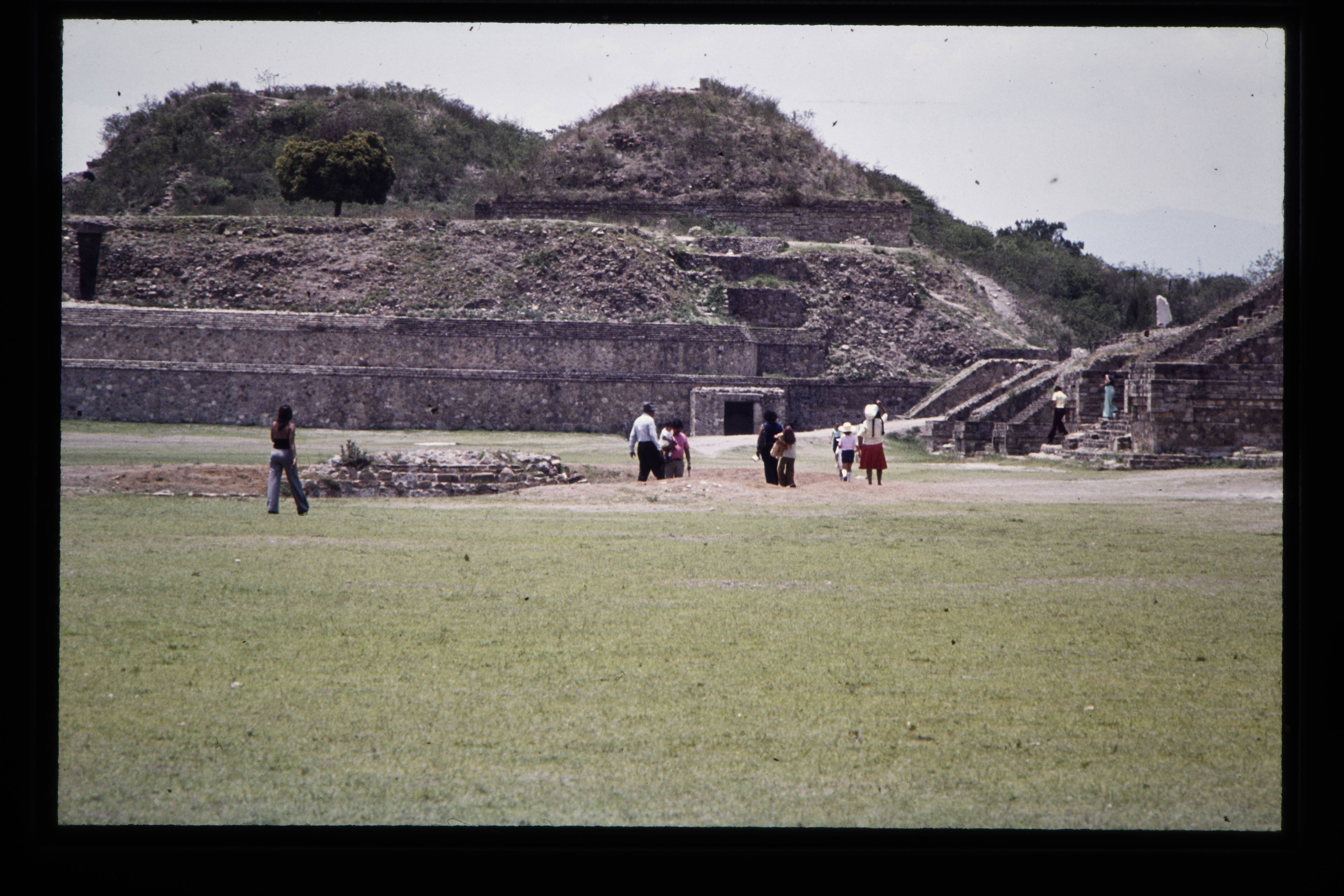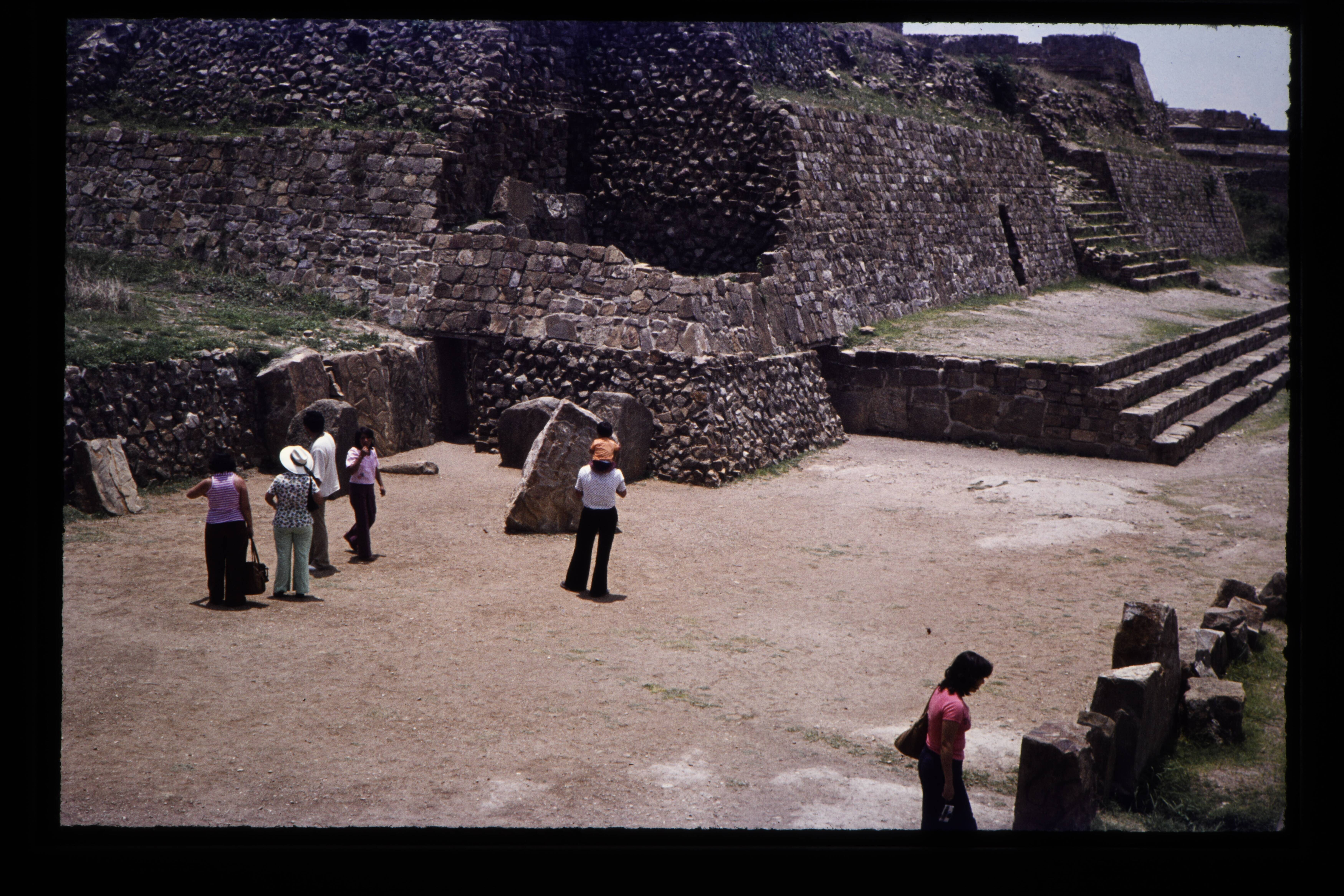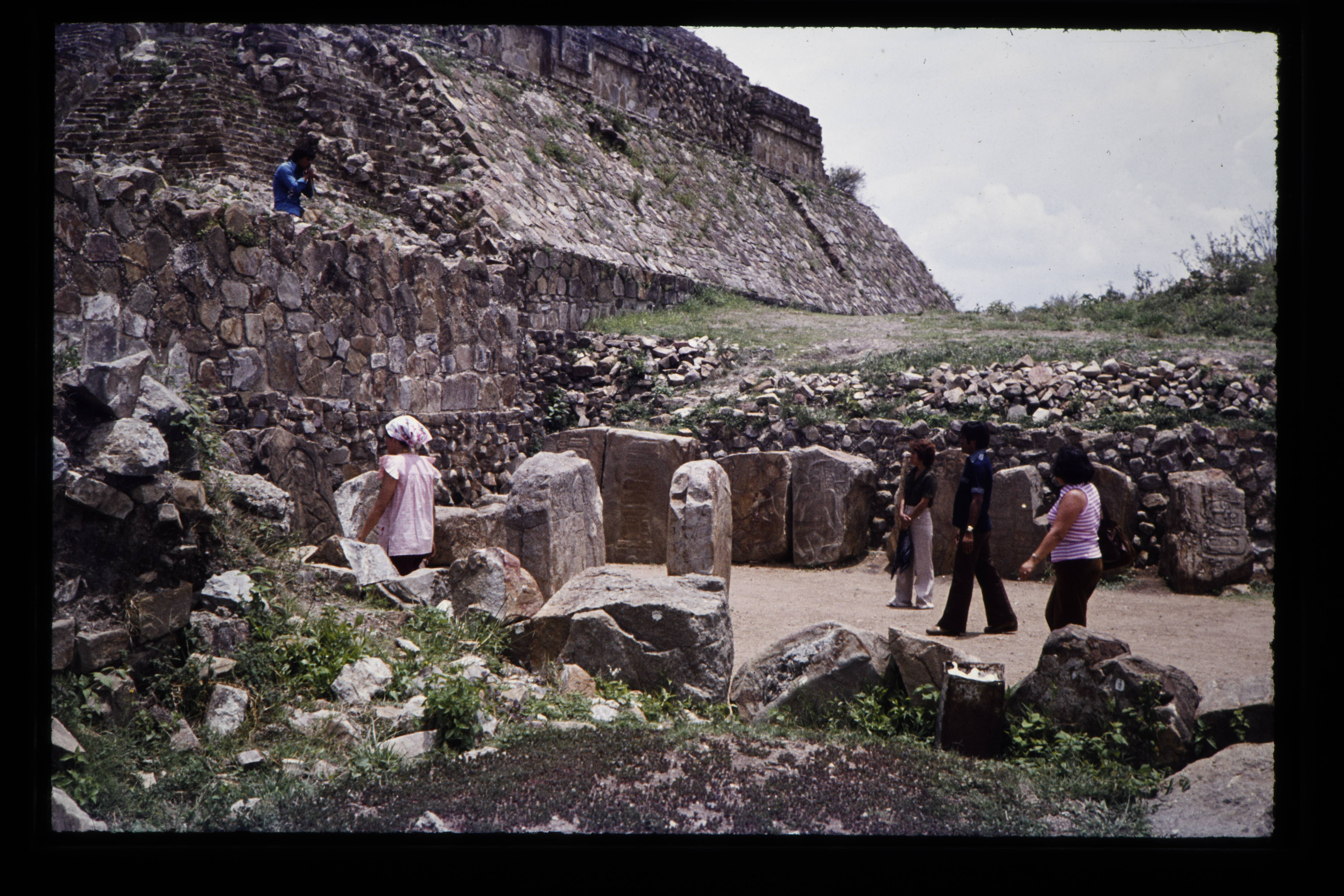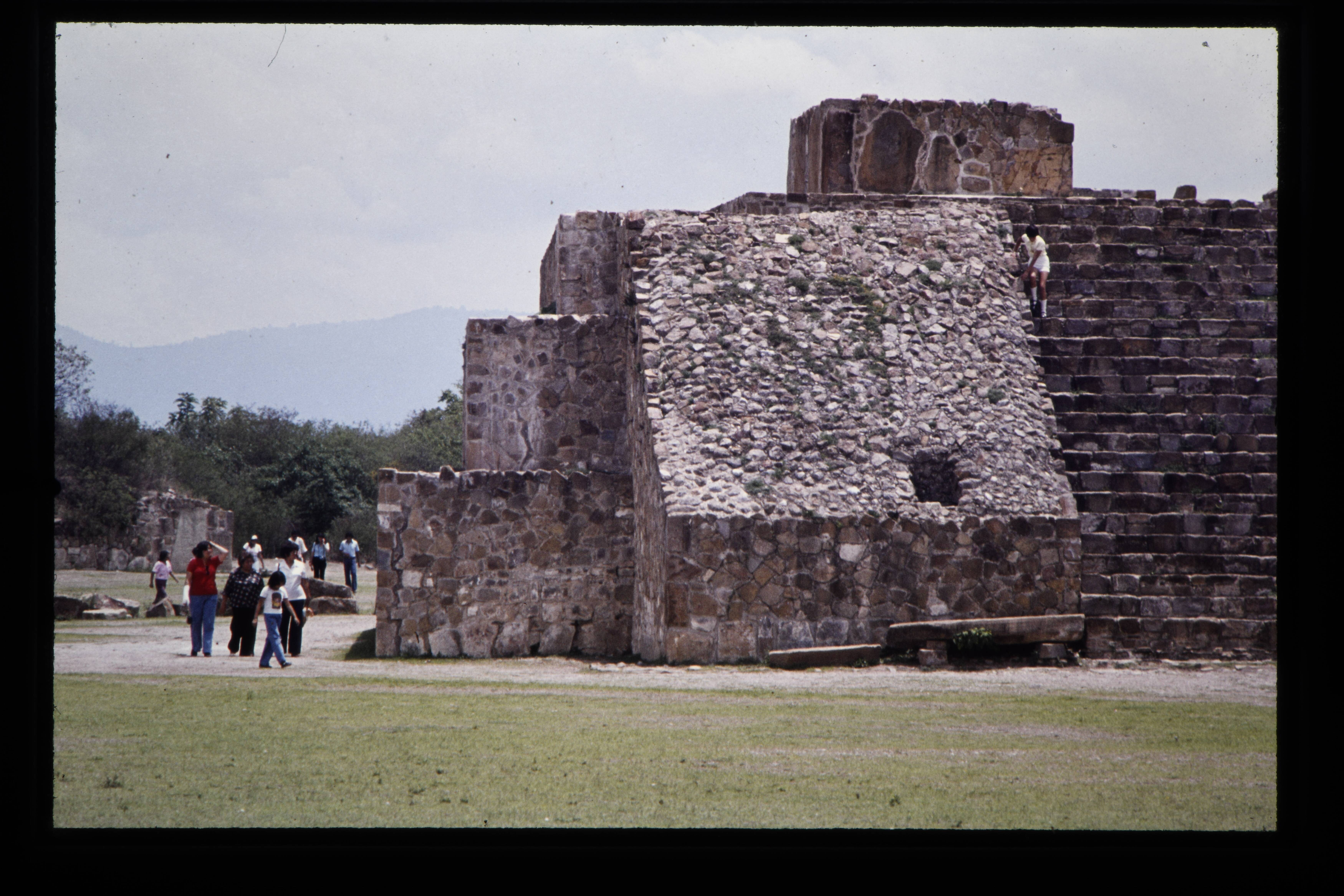 'Toeristen bij de Zapotec ruïnes van de Monte Albán....