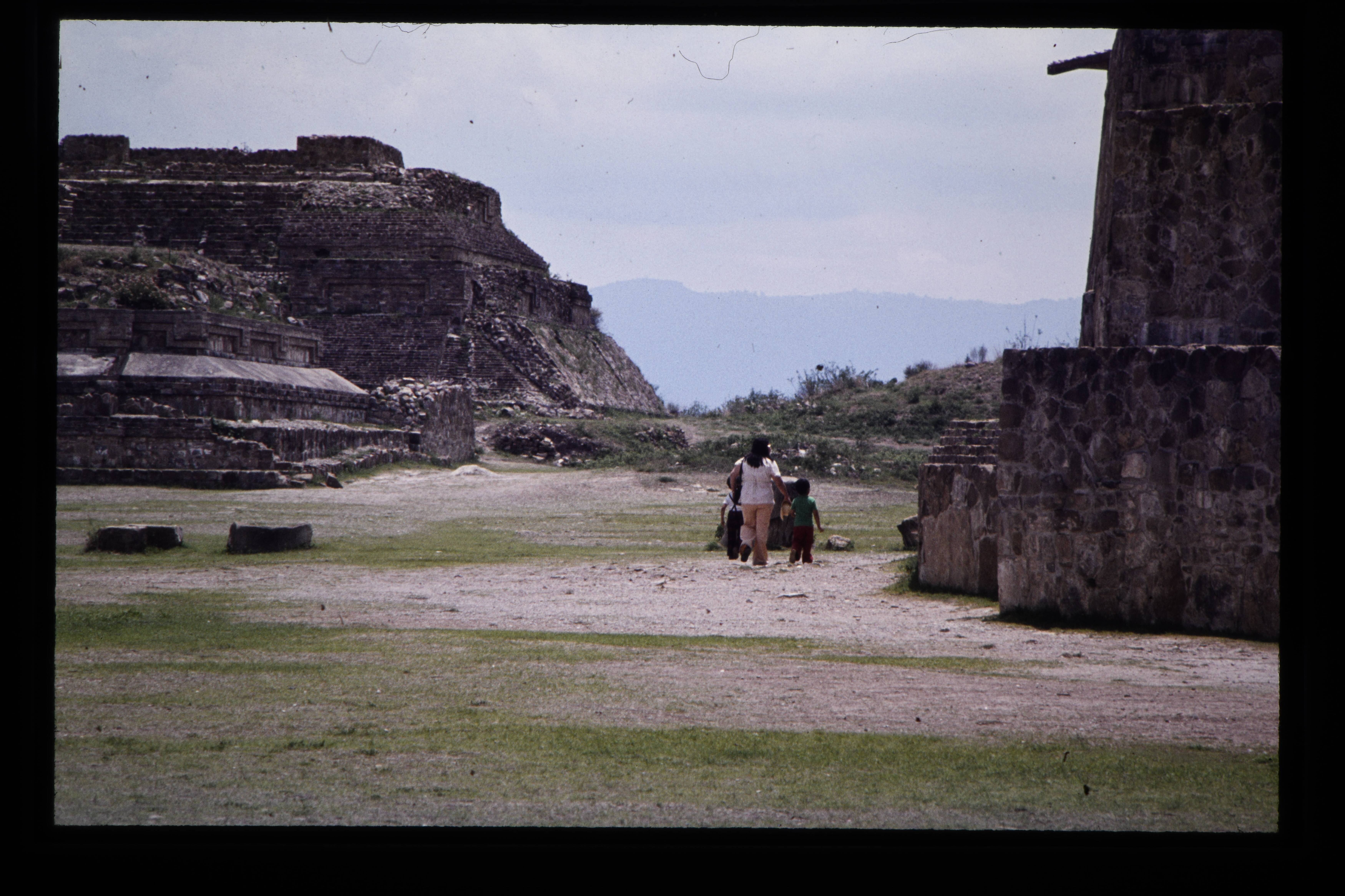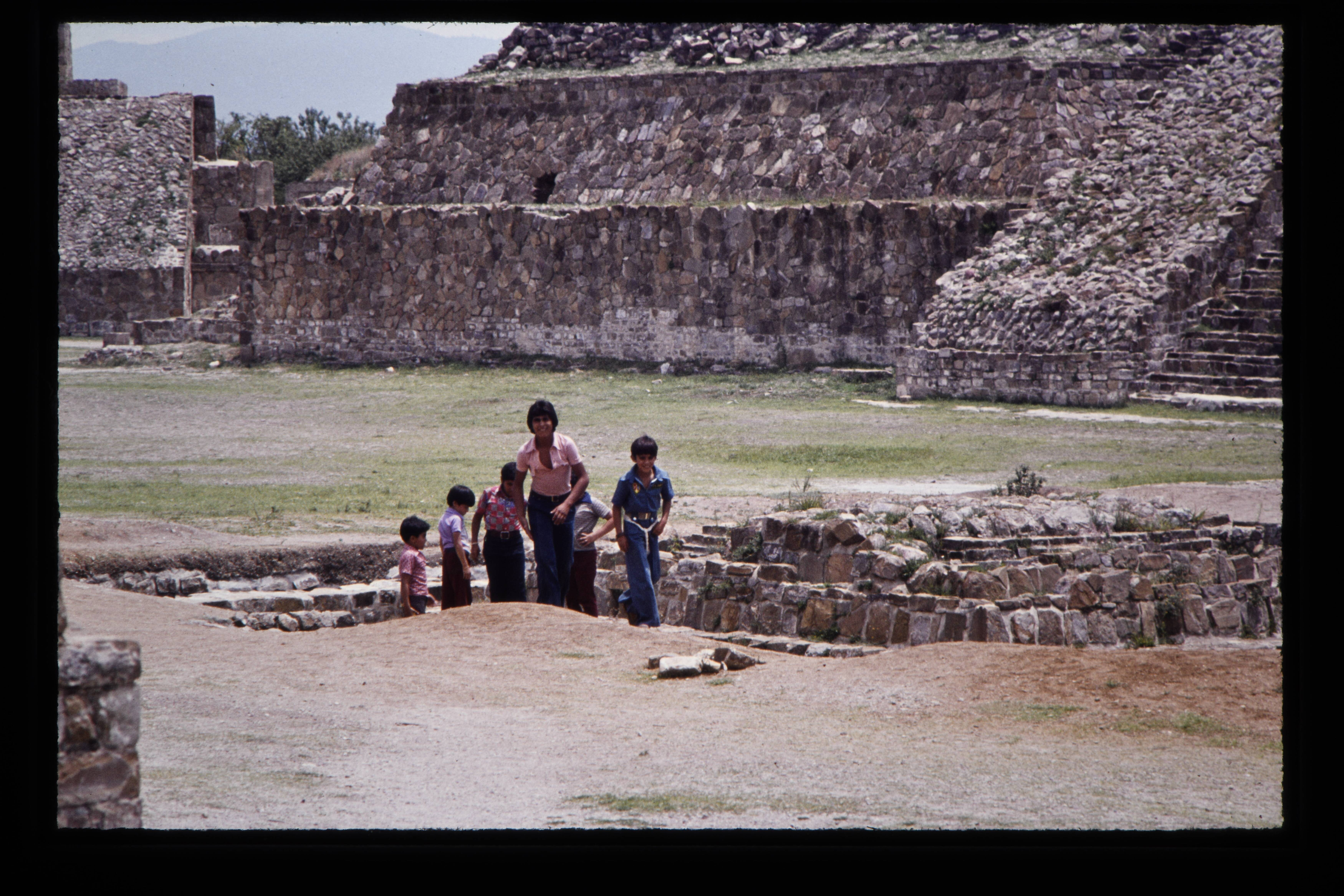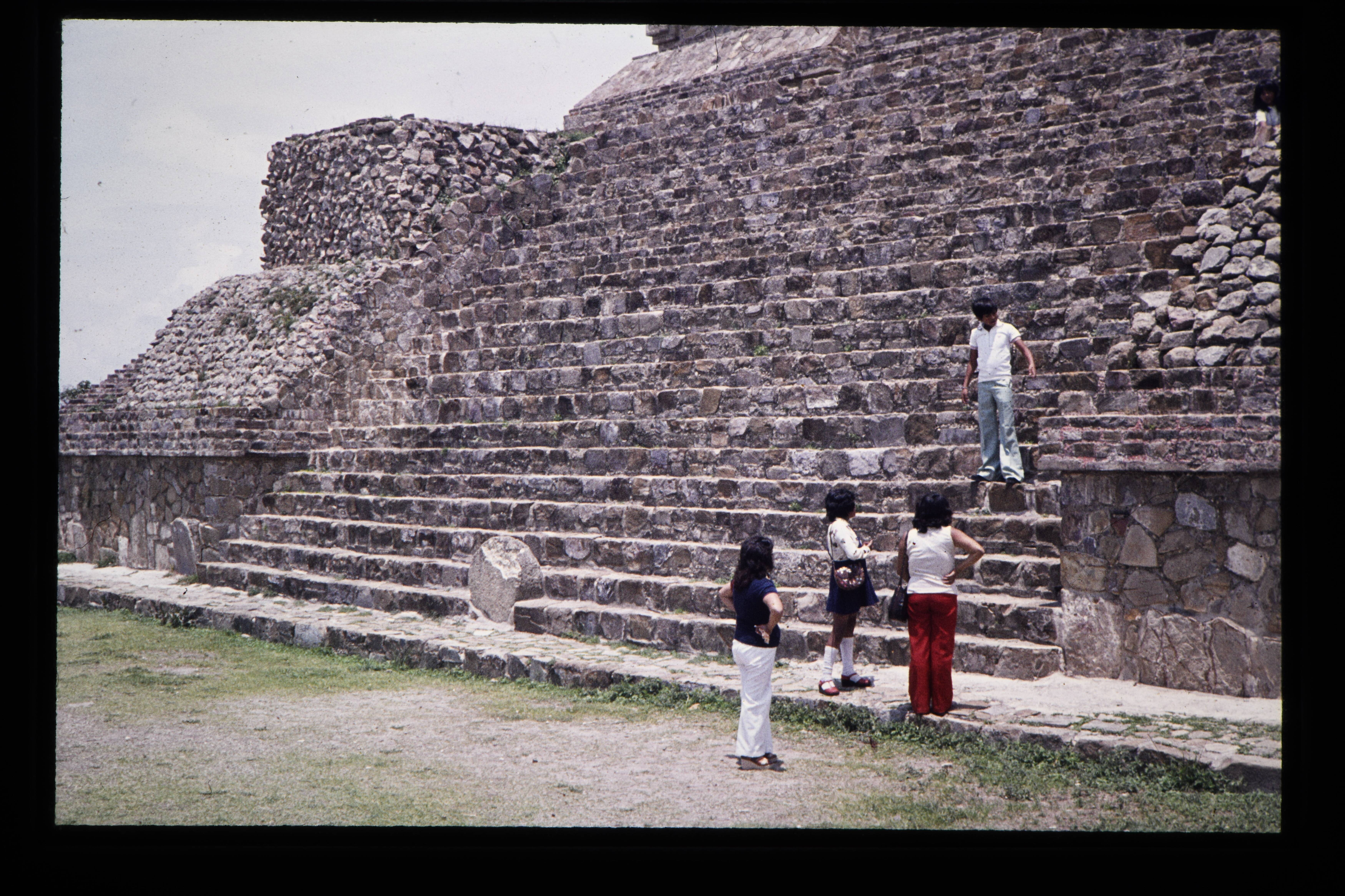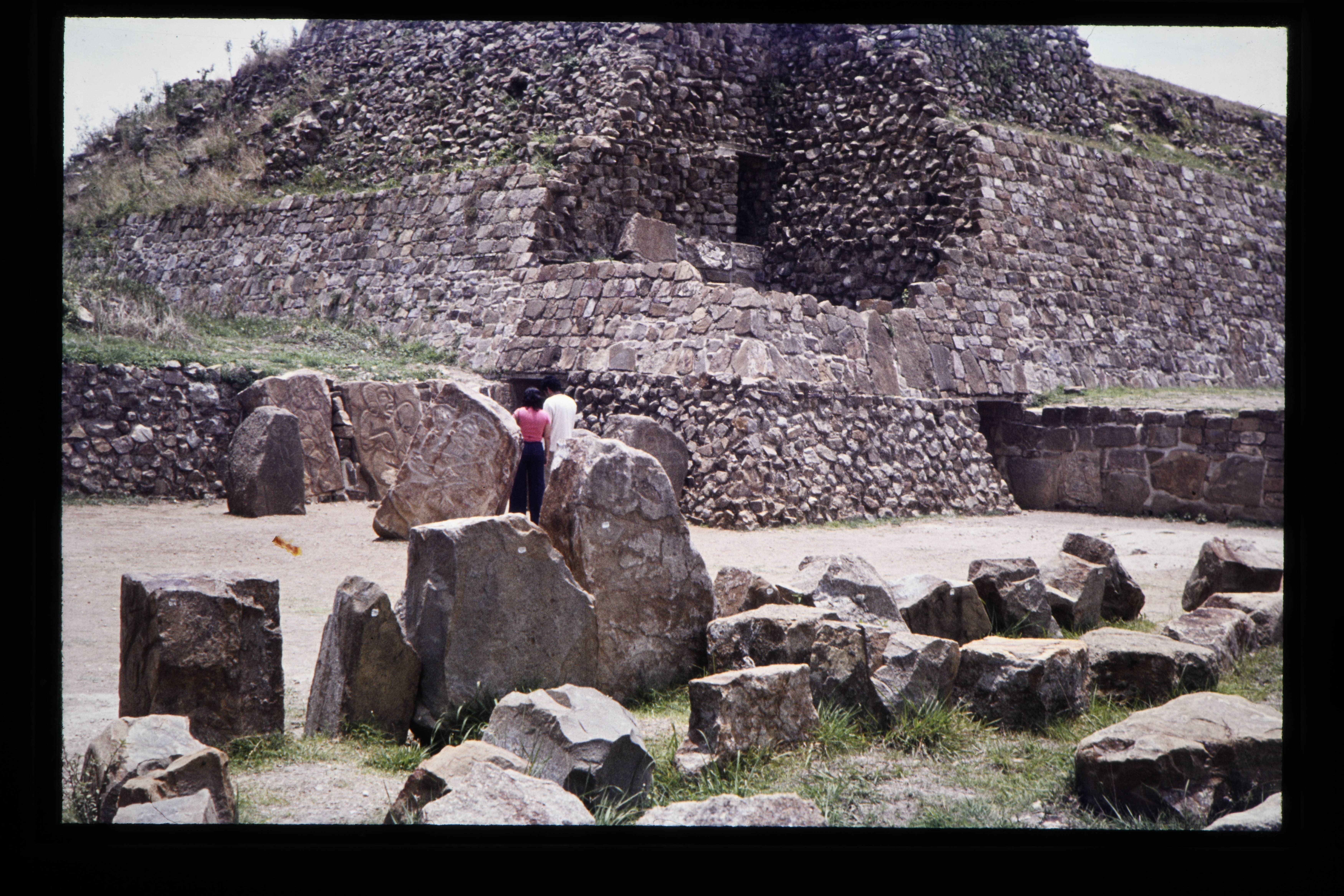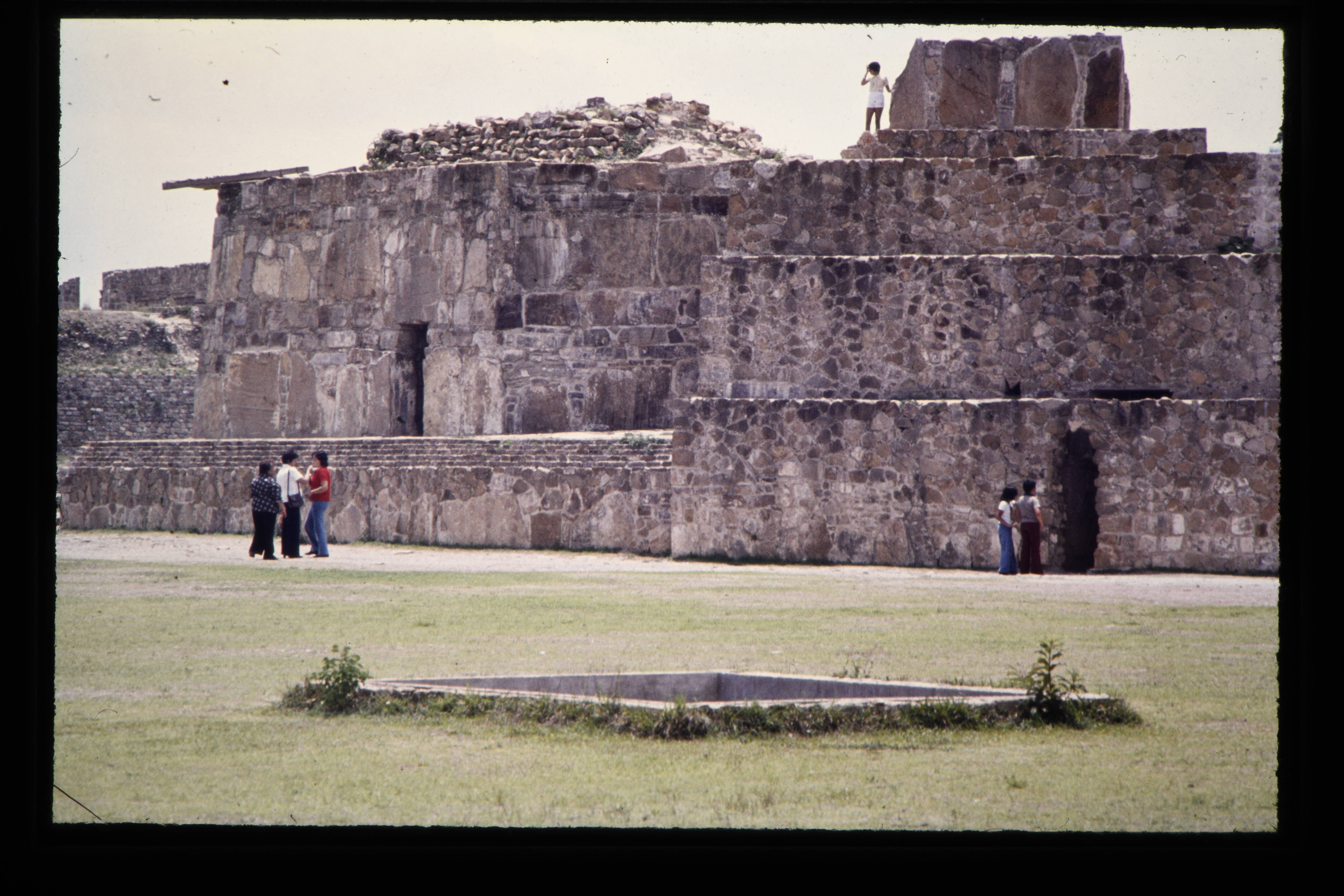 'Toeristen bij de Zapotec ruïnes van de Monte Albán....