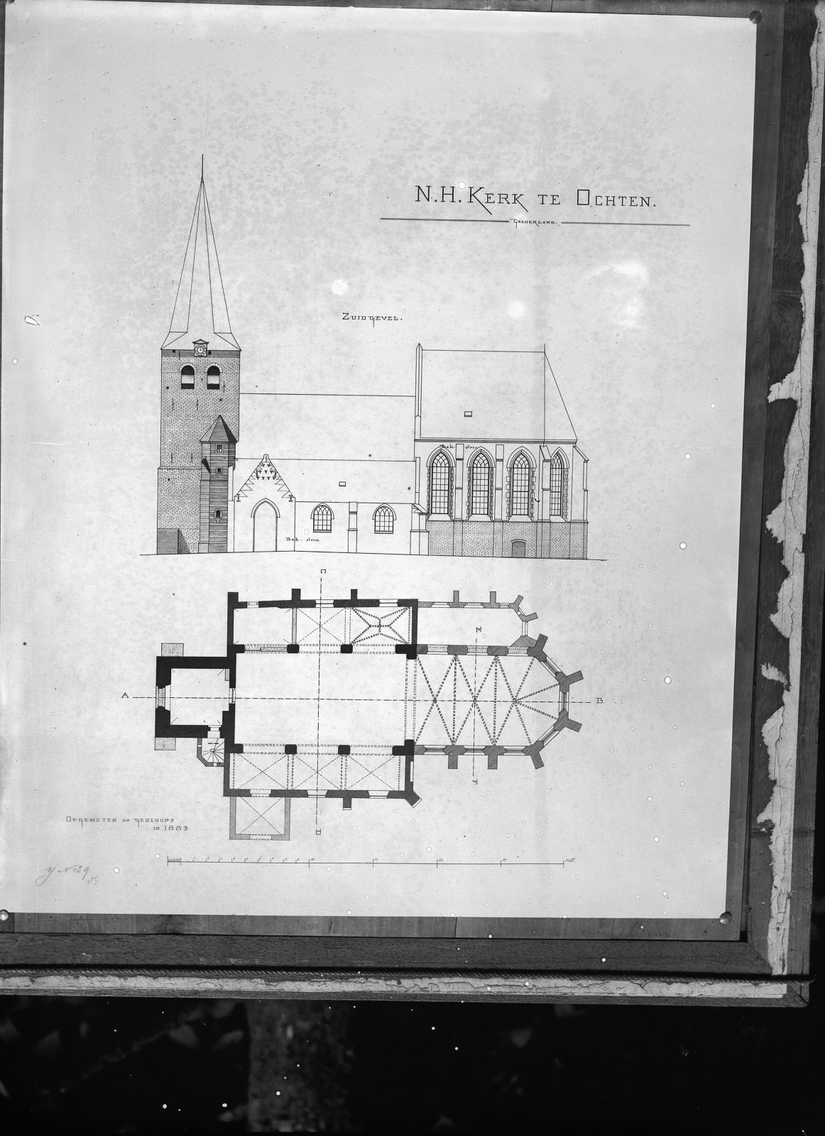 Bouwkundige tekening - opgemeten en gesloopt in 1883