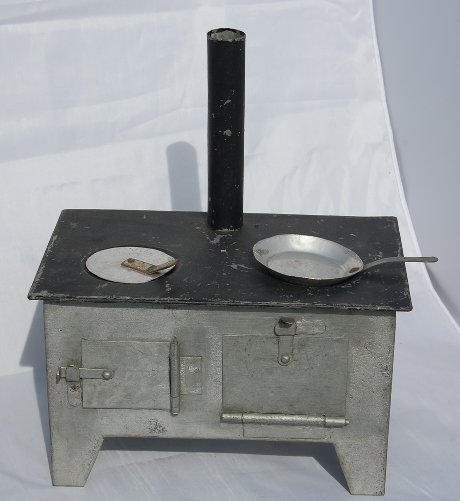 miniatuur kinderfornuisje van metaal periode 1940-1945