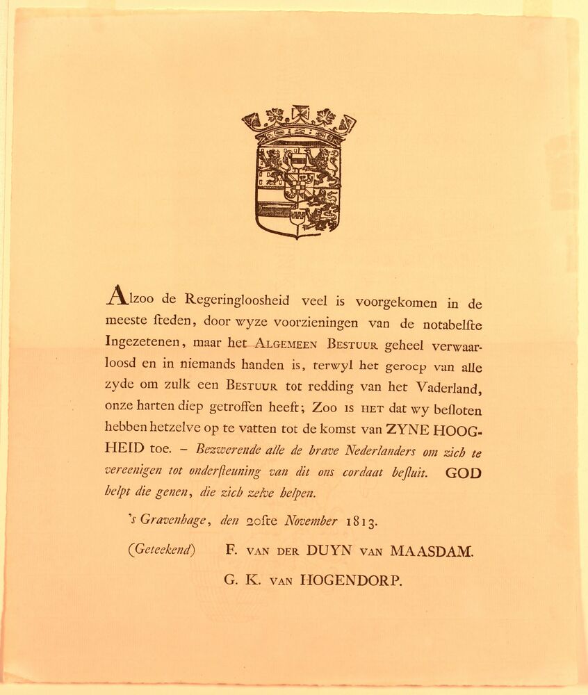 Proclamatie 's Gravenhage, den 20ste November 1813