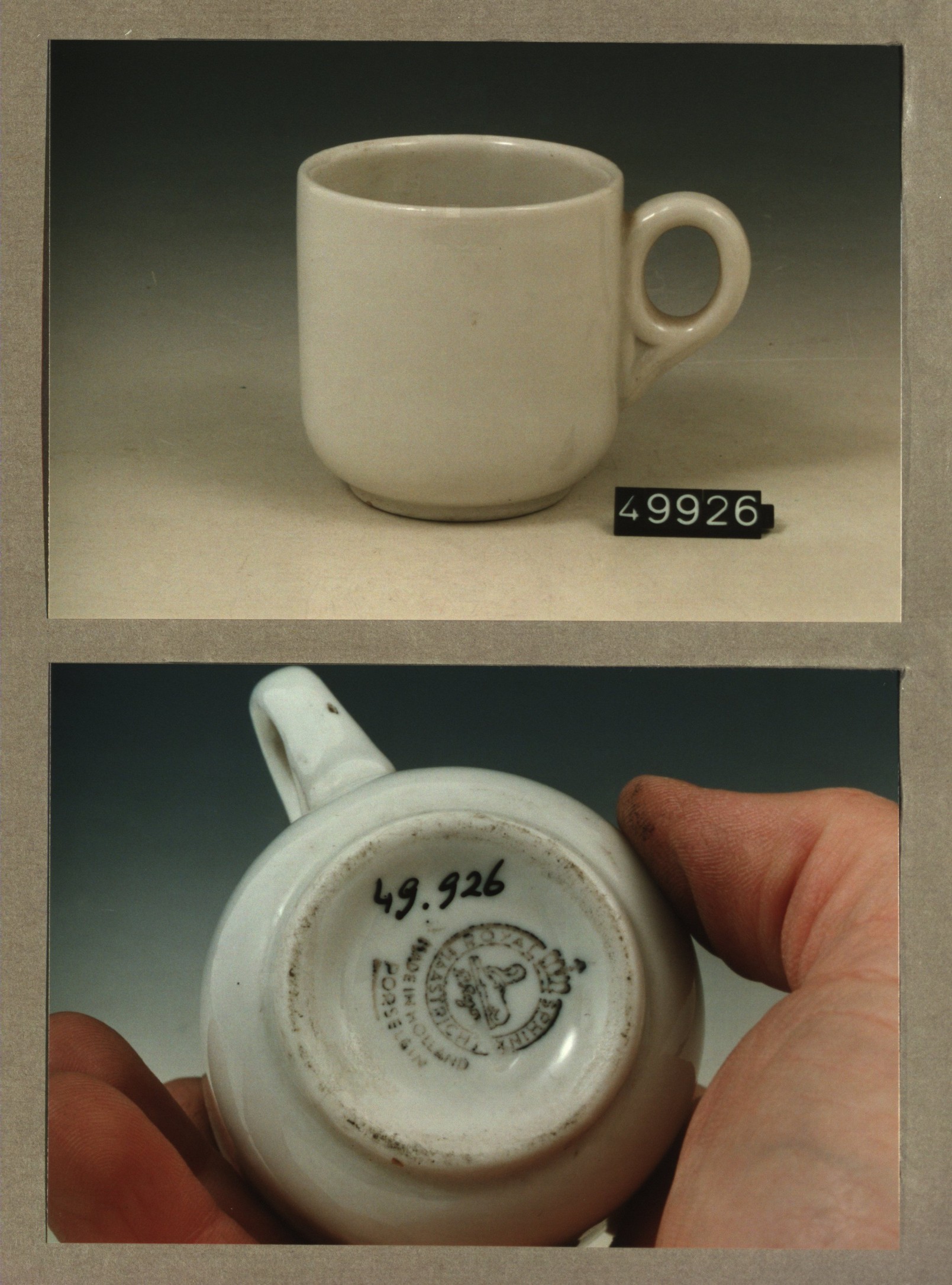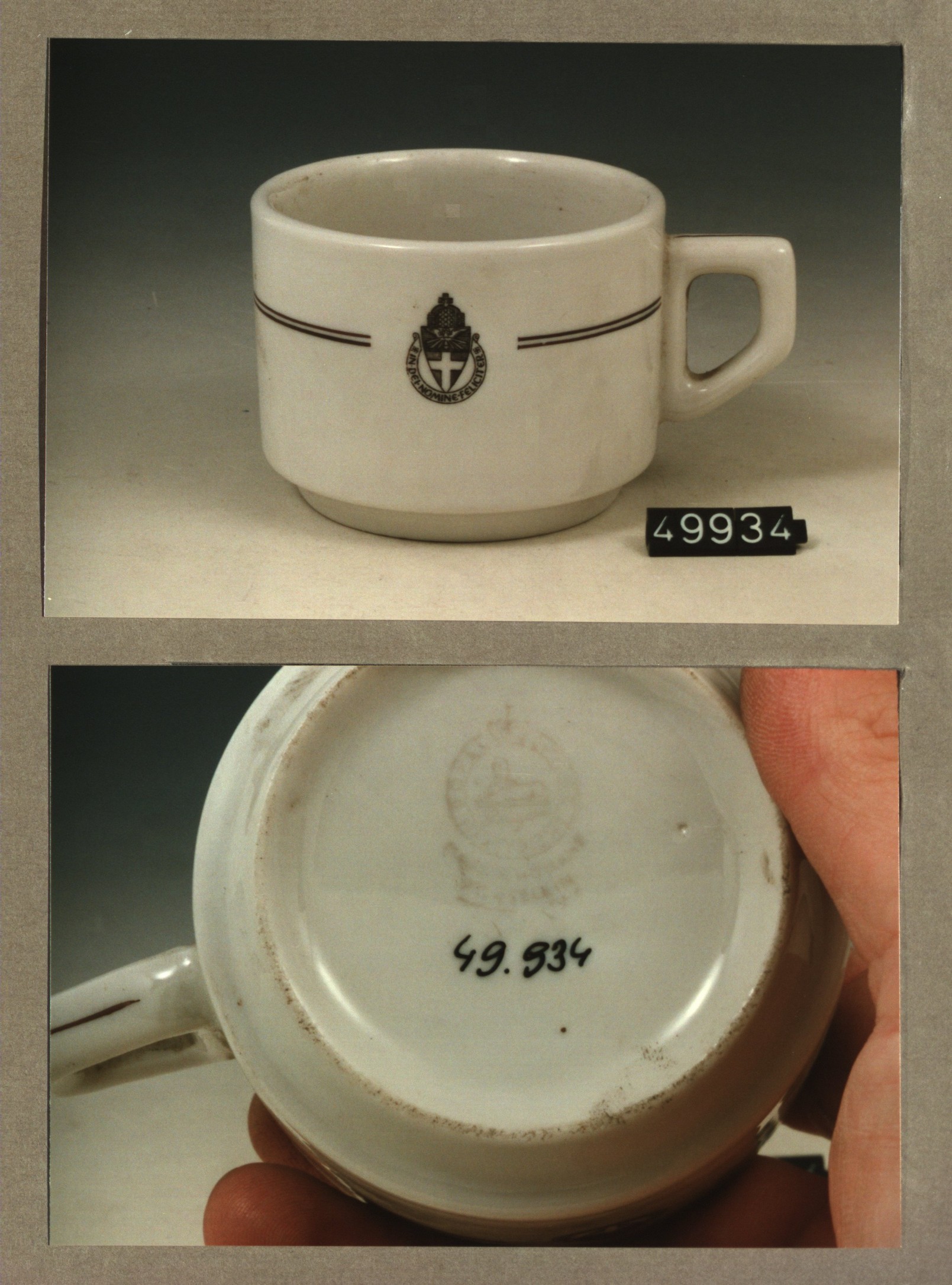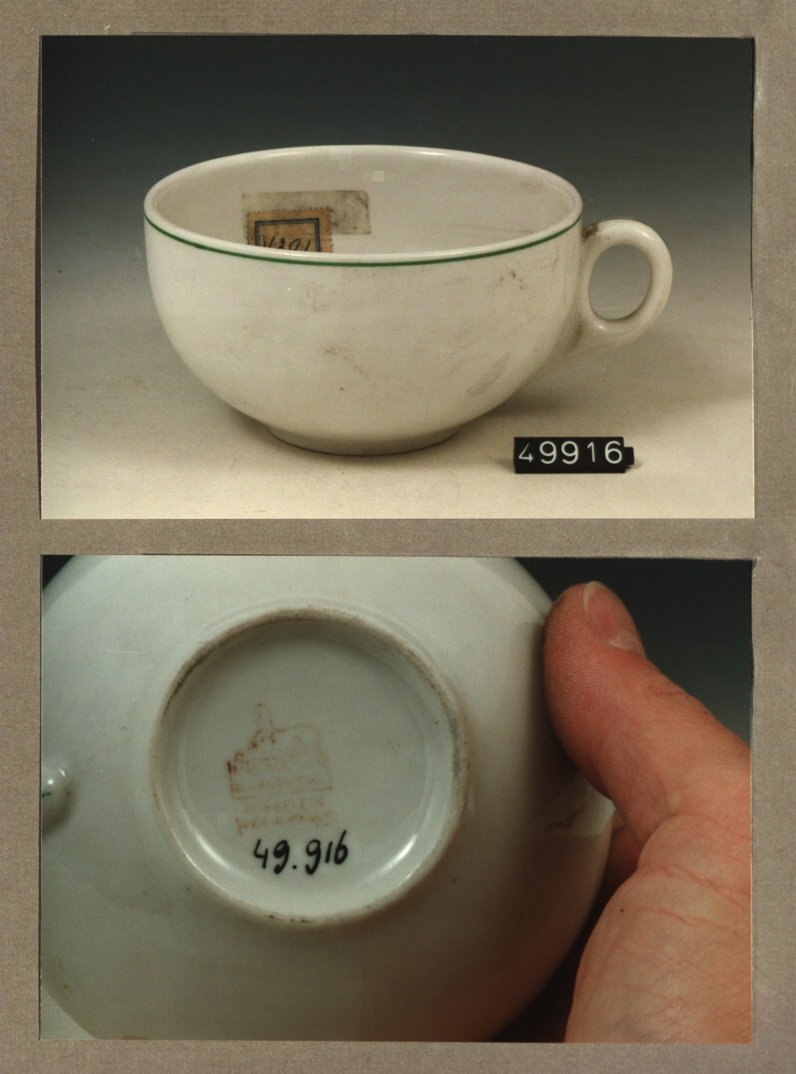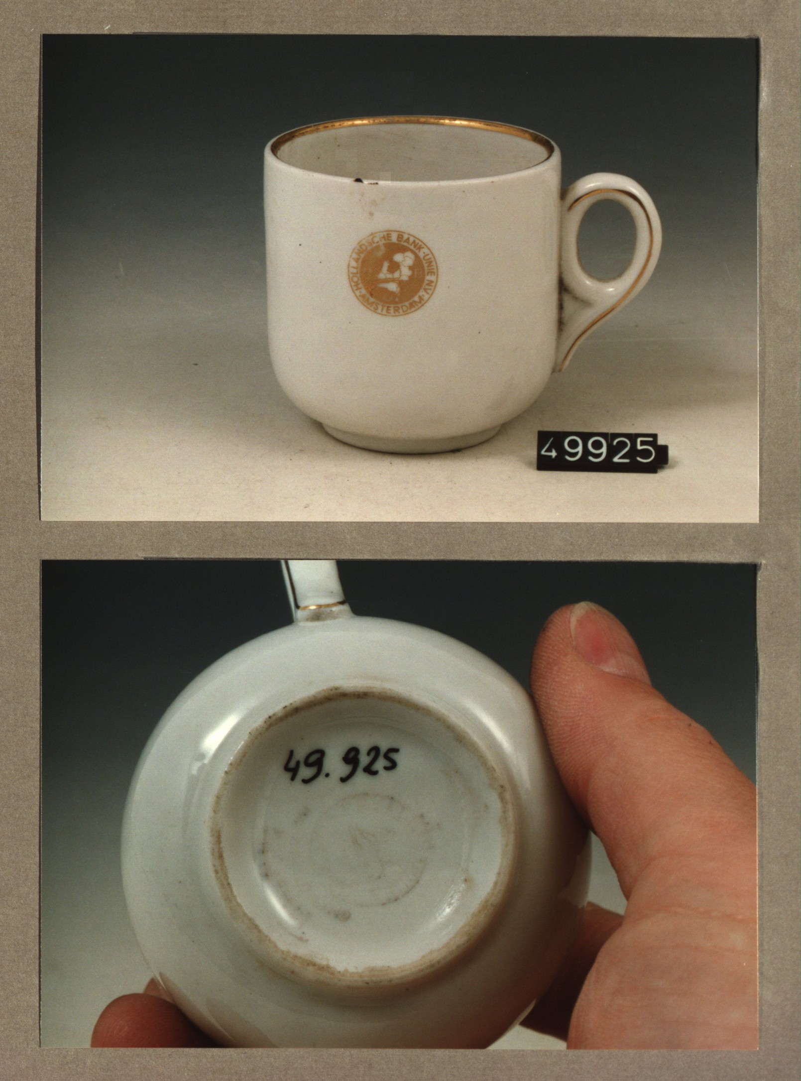 Kop met opschrift, model F met decor Schunck