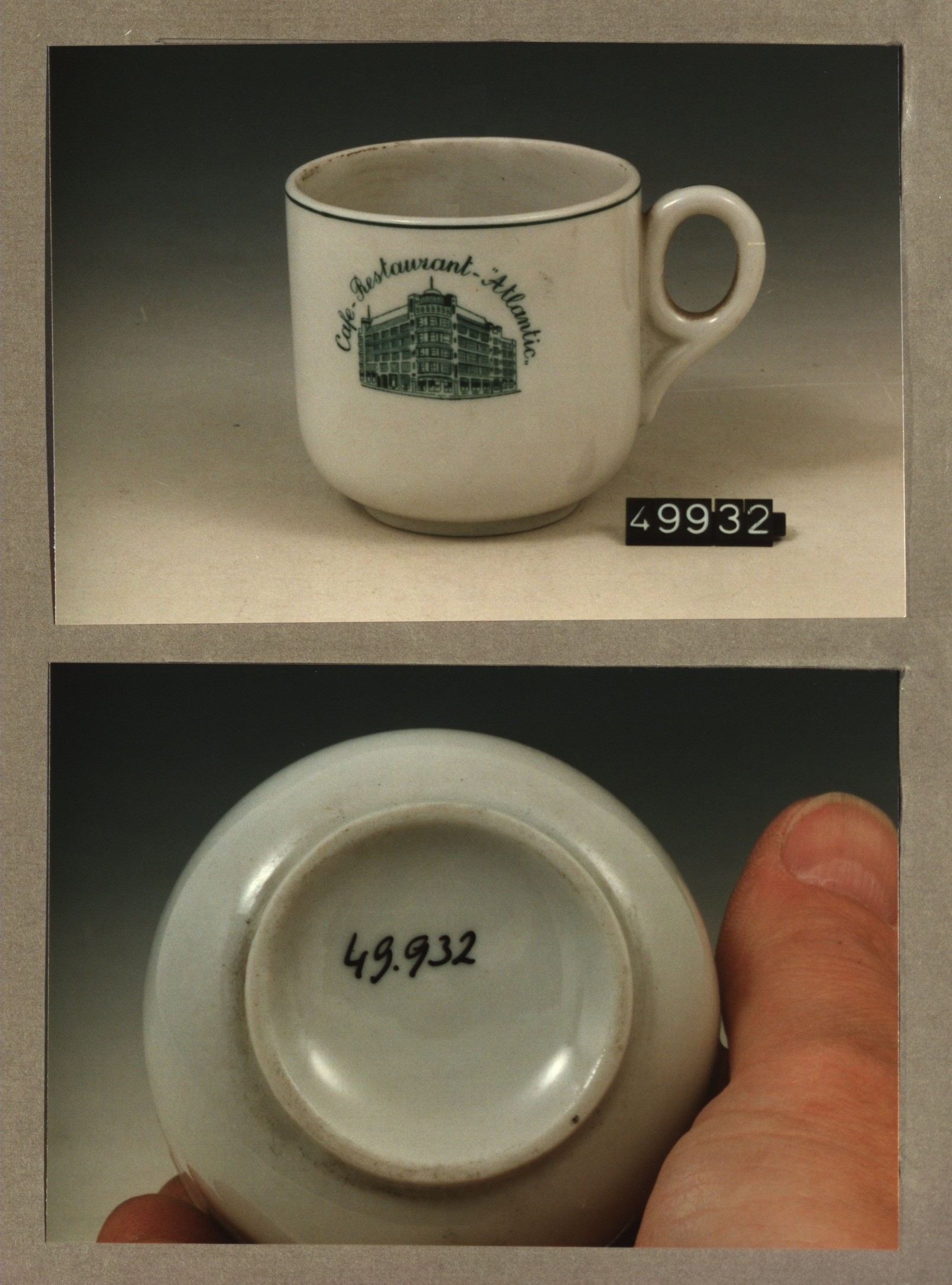 Kop met opschrift, model F met decor Atlantic cafe r...