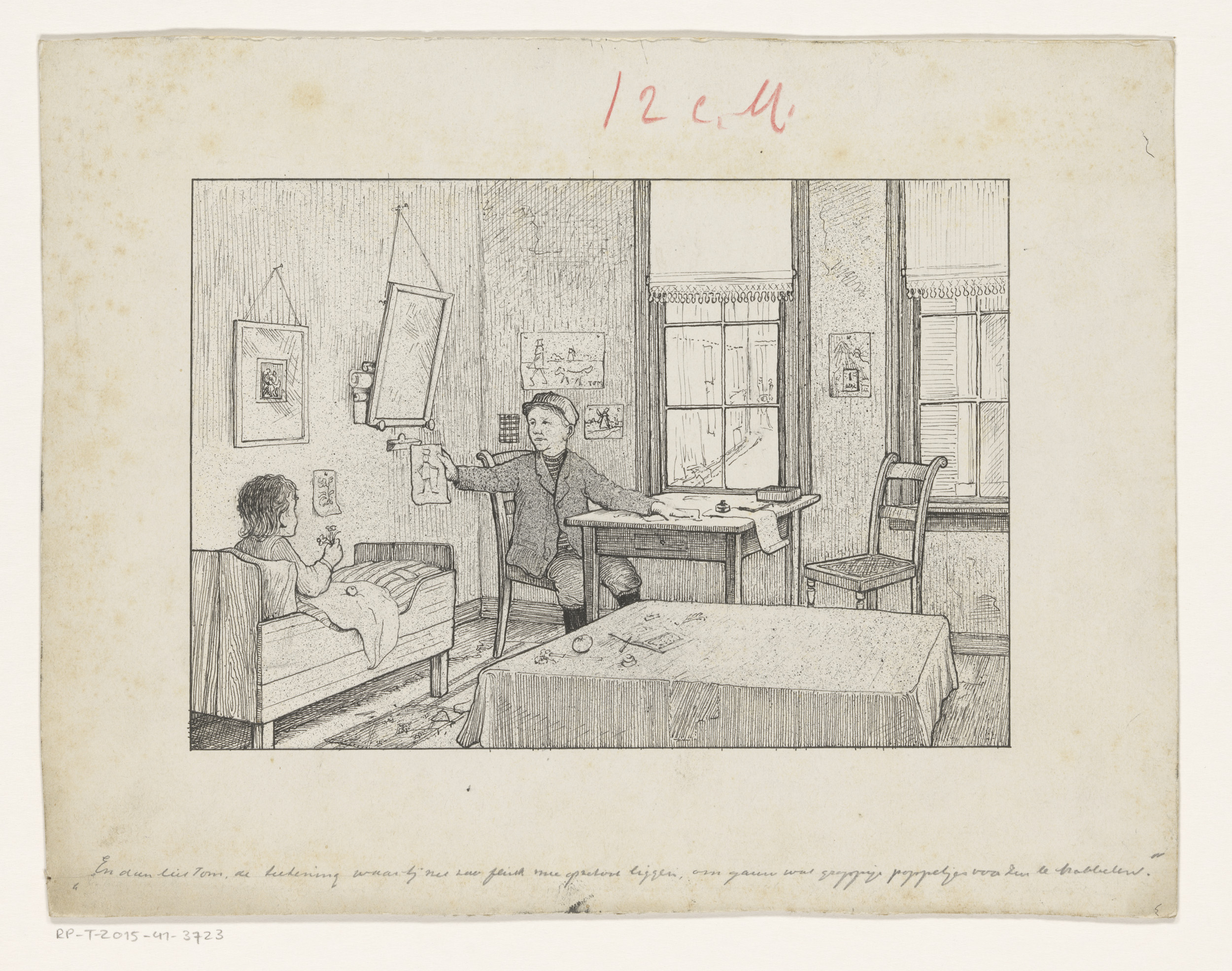 Tom laat een tekening aan zijn zus zien