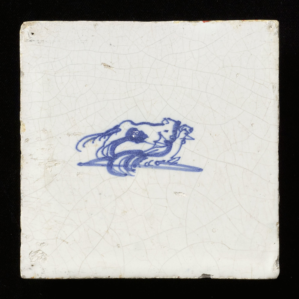 tegel van aardewerk met tinglazuur, voorstellende: h...