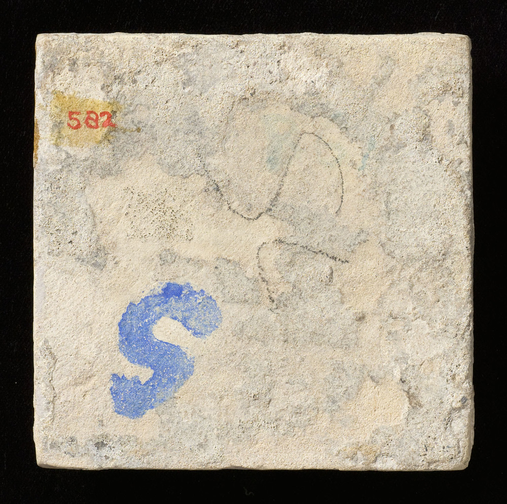 tegel van keramiek met tinglazuur, voorstellende: De...