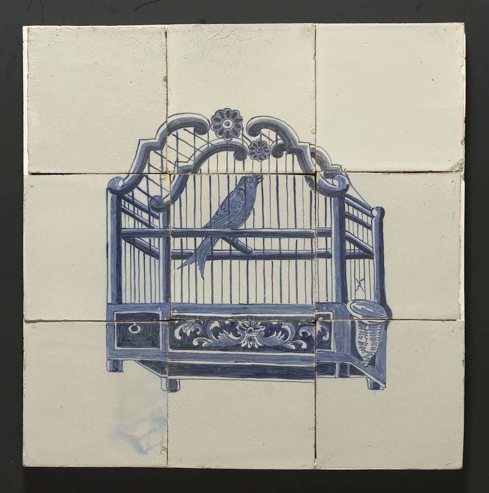 Tegeltableau van keramiek, tinglazuur, voorstellende...