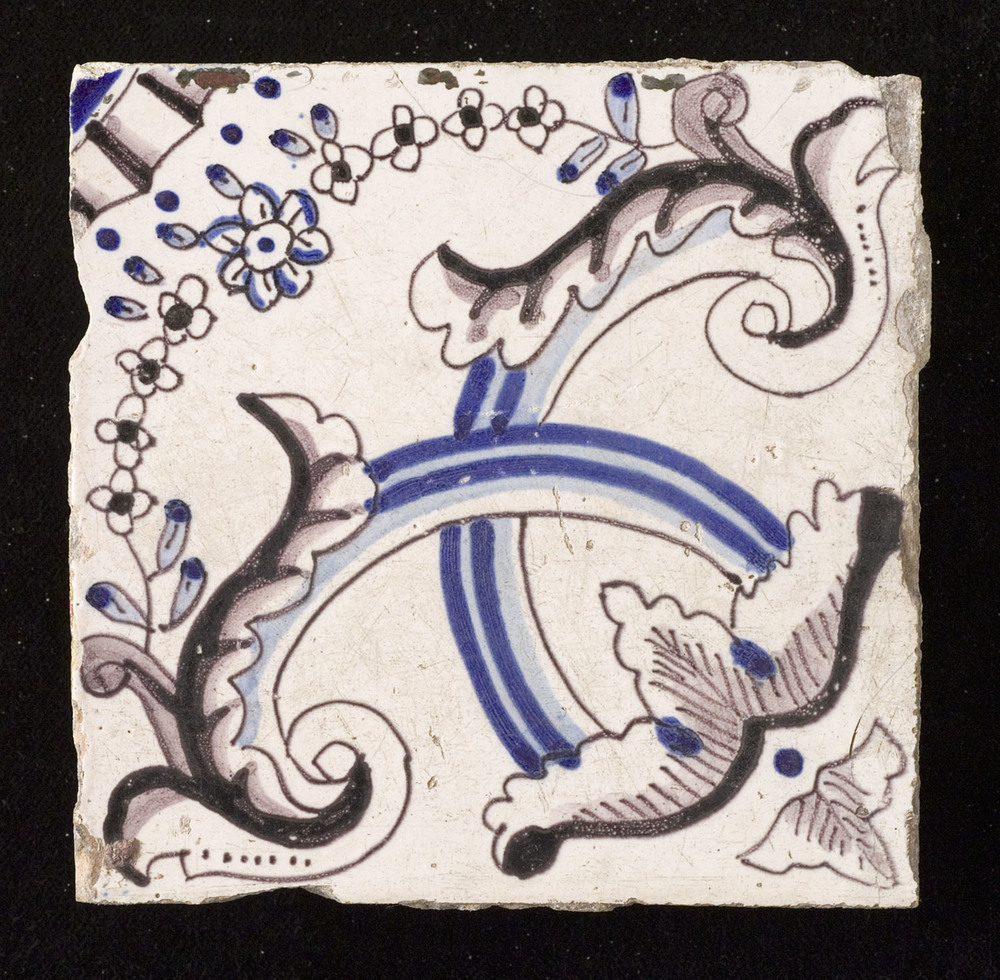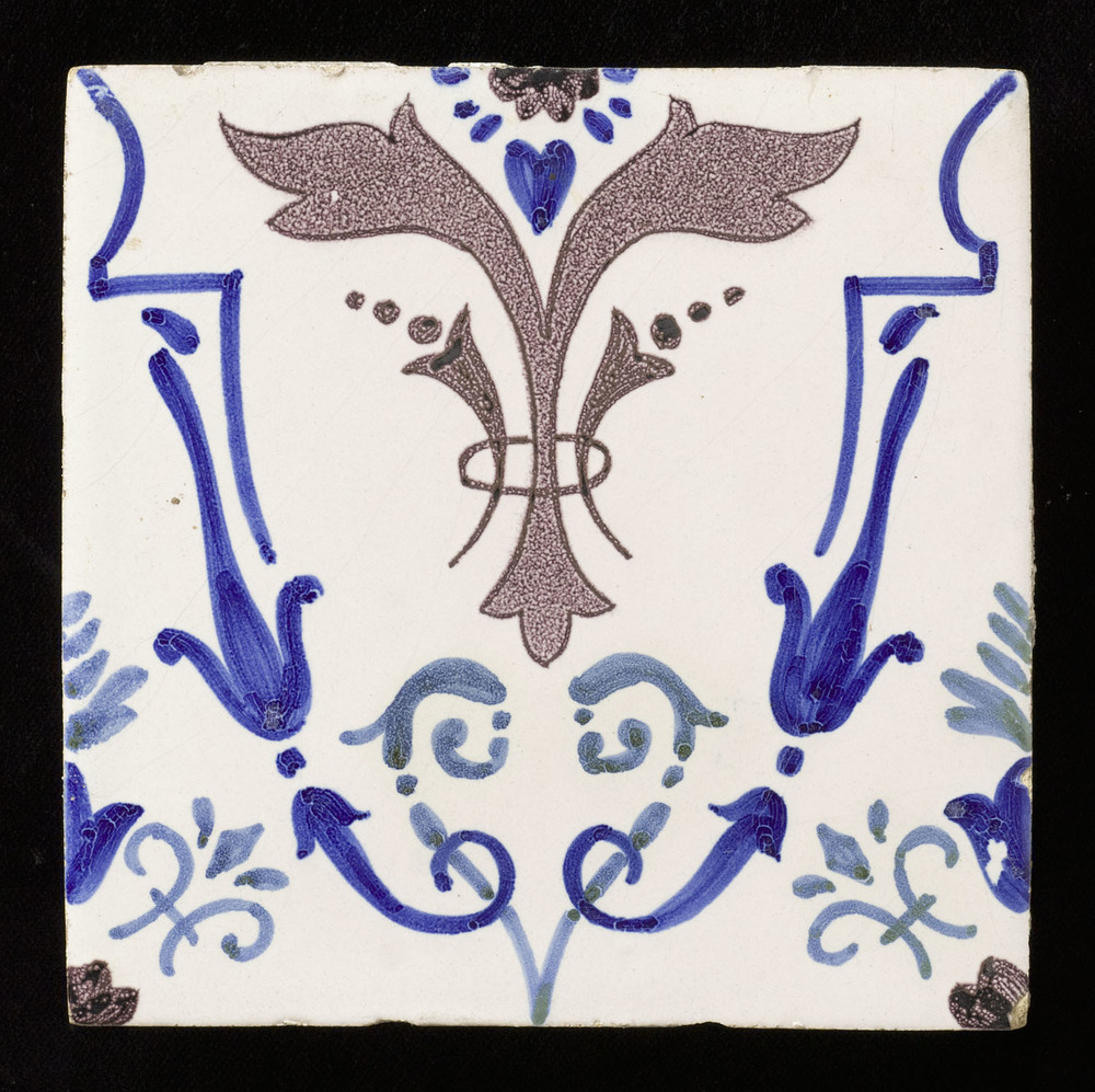 tegel van aardewerk met tinglazuur, voorstellende: l...