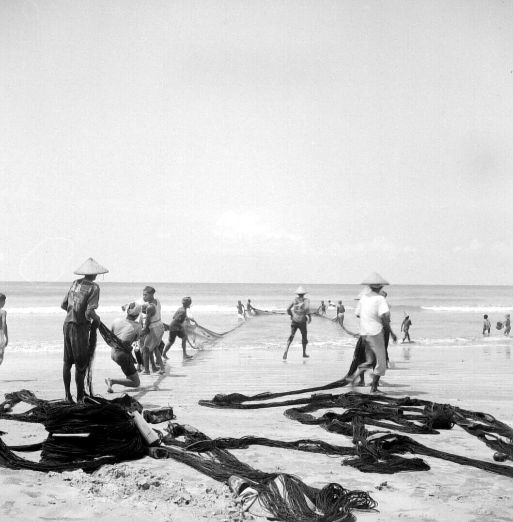 Het drogen van netten aan de kust van Celebes