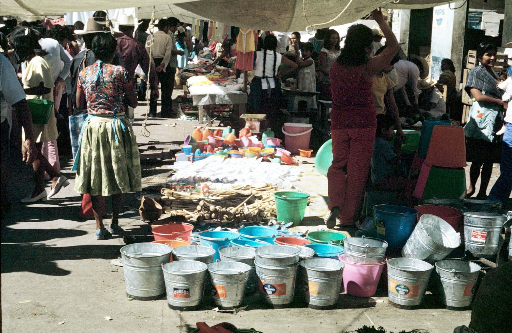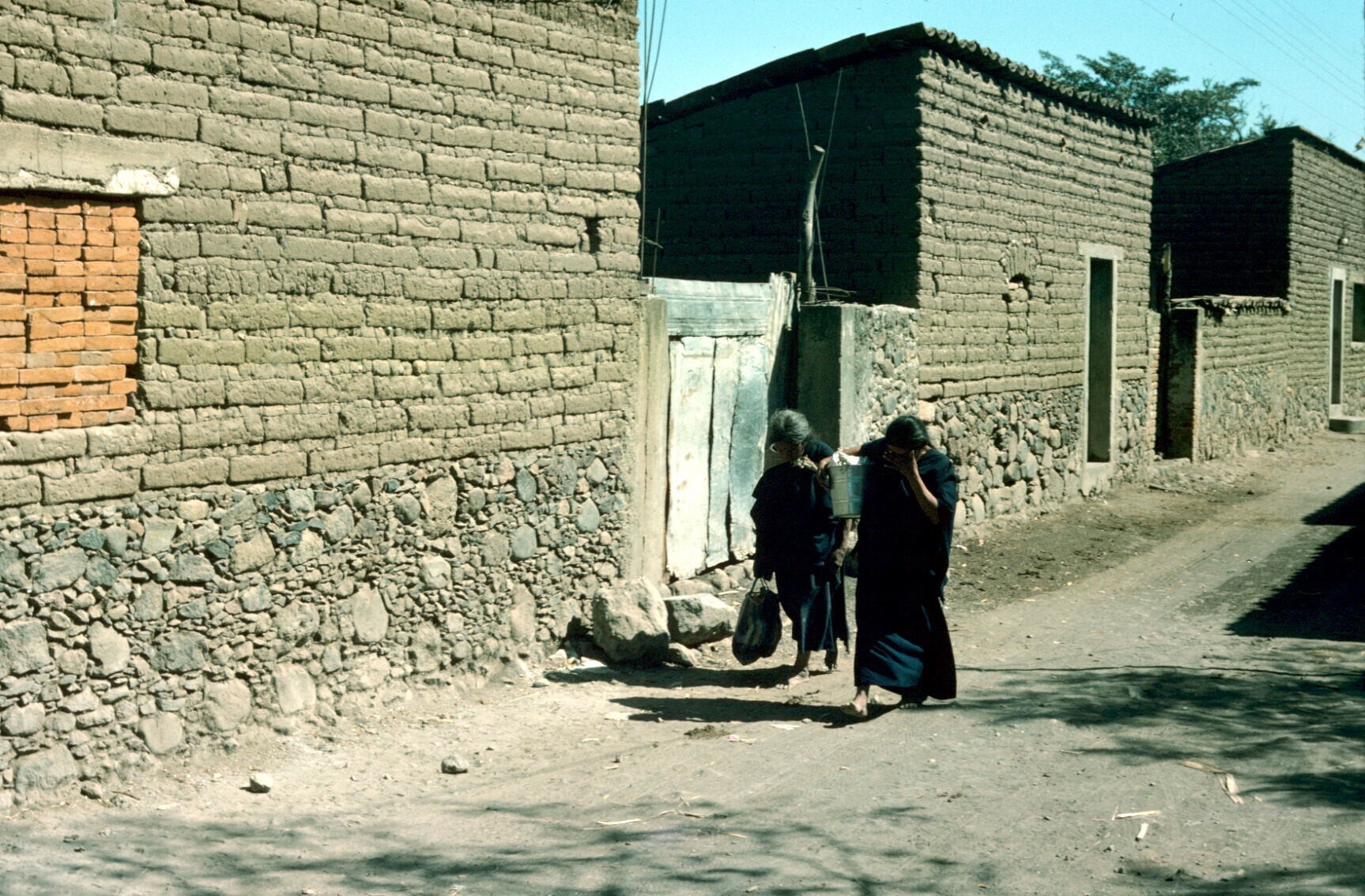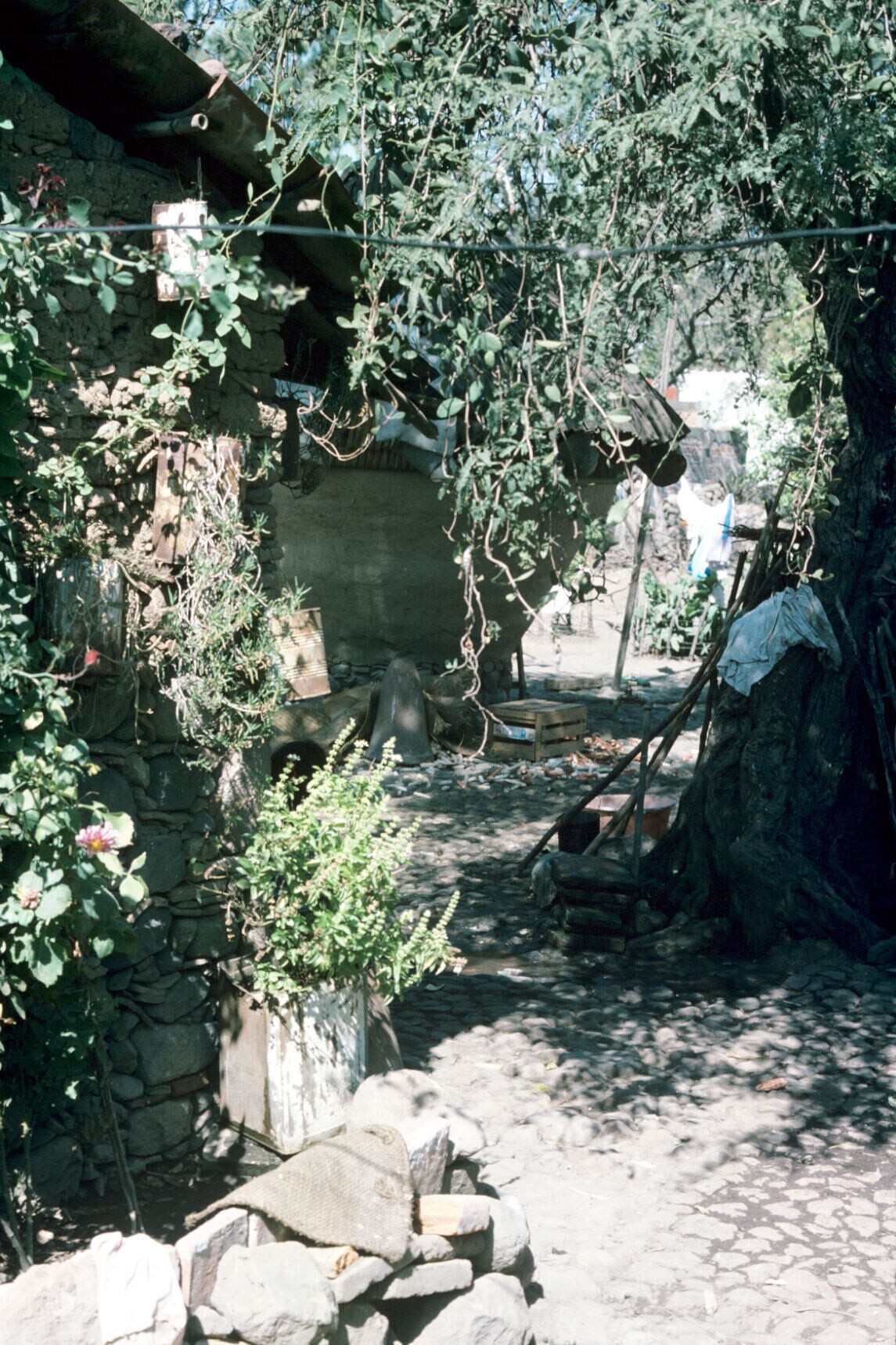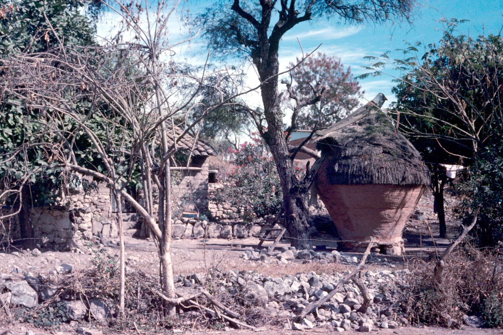 dorpsgezicht met cuezcomate (maïsopslagplaats)