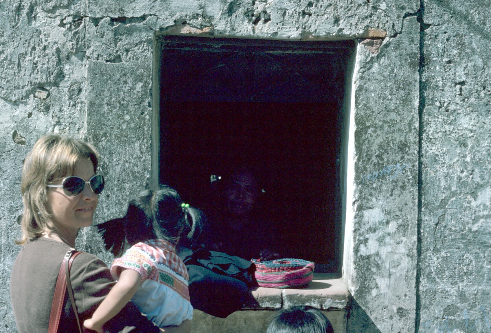 Paula Leyenaar, met dochter Floor op arm, dracht kop...