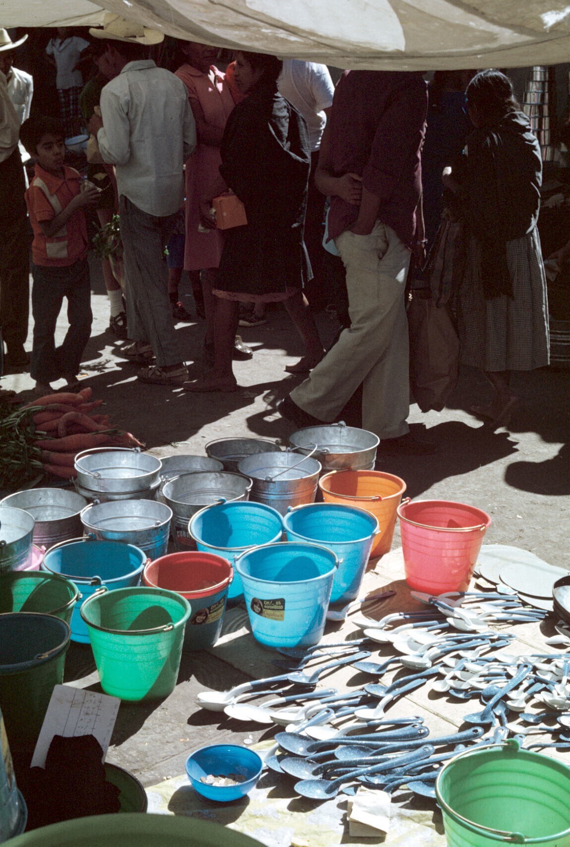markt; op achtergrond de vulkaan Iztaccihuatl
