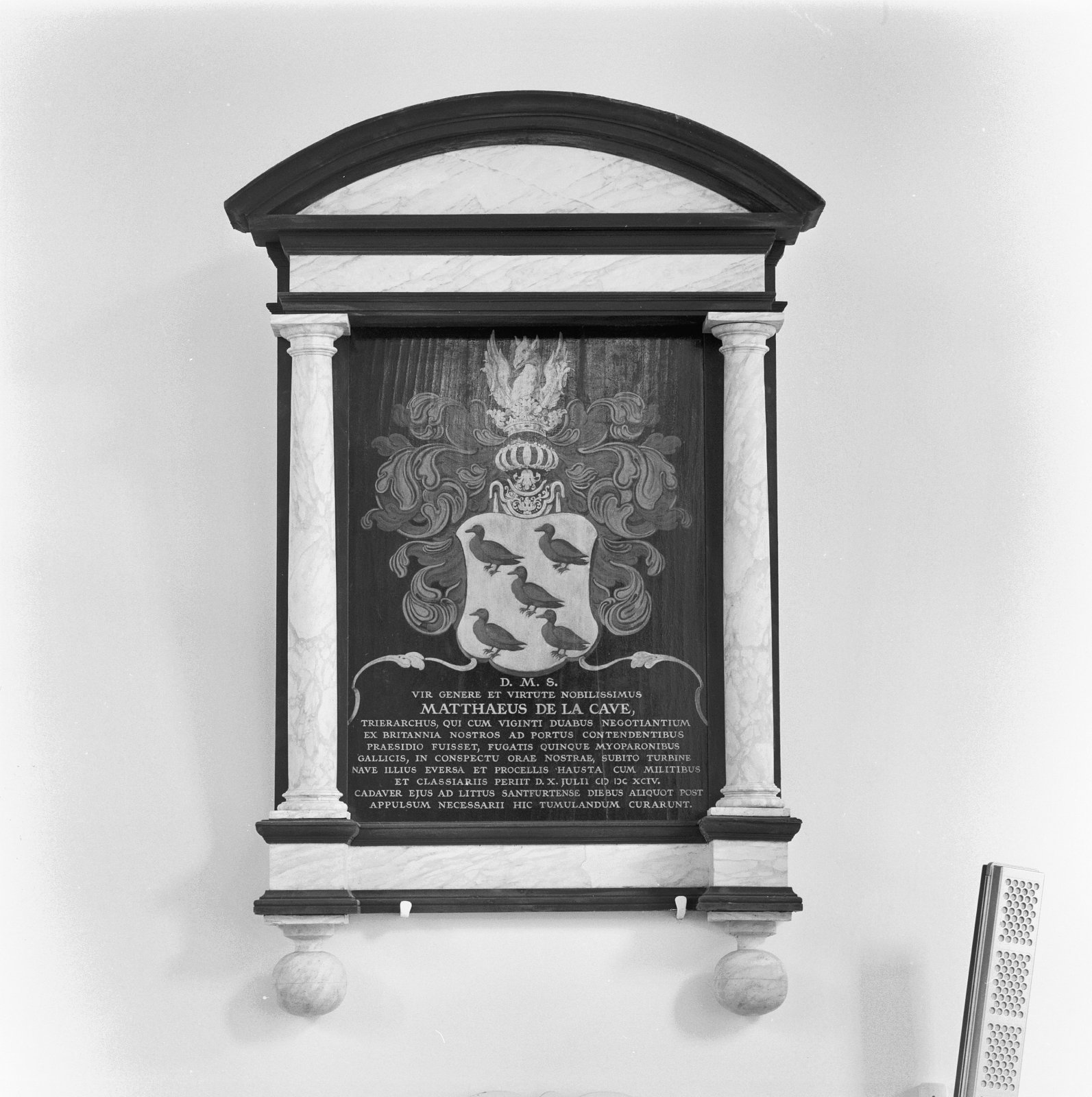 Interieur, rouwbord ter herinnering aan kapitein Mat...