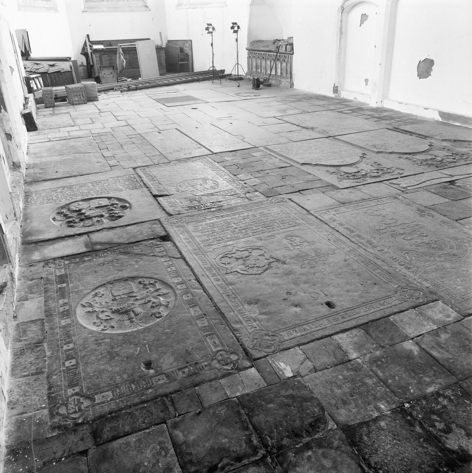 Interieur koor: grafzerken in de vloer, gezien naar ...