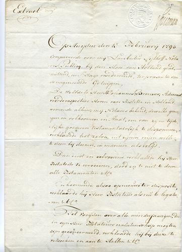 Notariële ontvangstbewijs, 1793