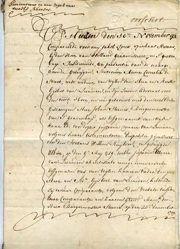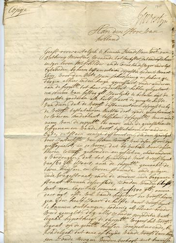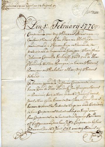 Kopie notariële akte wijziging in erfgenamen, 1782