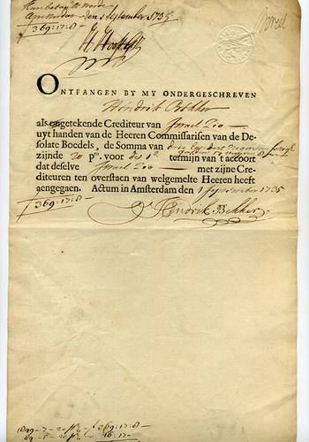 Akte ontvangstbewijs, 1735