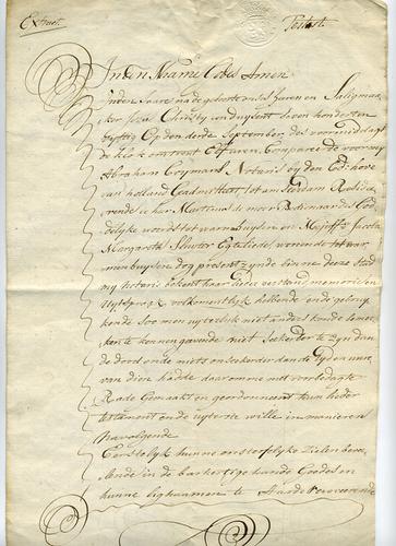 Testament, extract, 1703