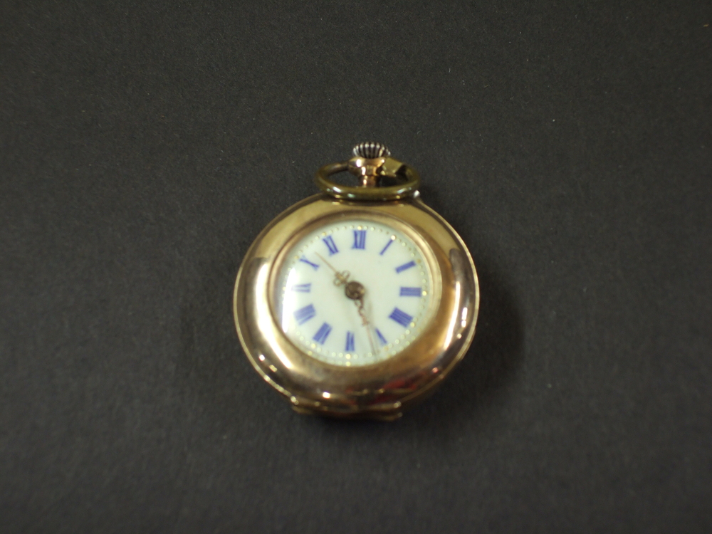 Dameshorloge van goud of doublé, met ingelegde parel...