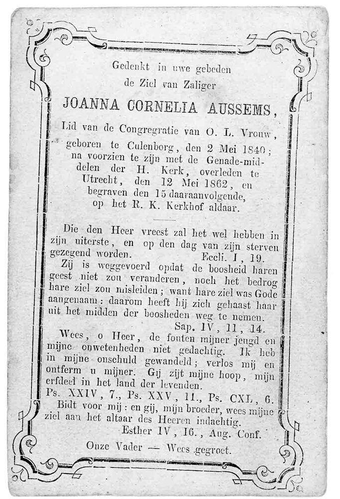 bidprent voor Joanna Cornelia Aussems. Geboren 02-05...