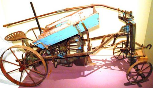 Aardappelpootmachine van metaal en hout voor paarden...