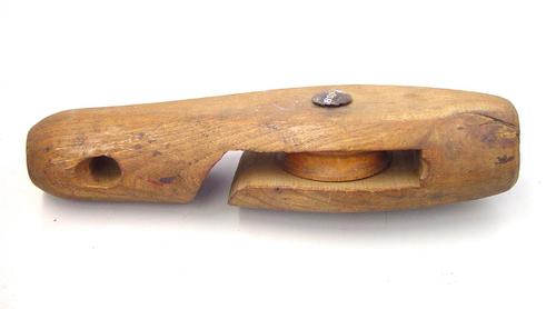 Katrol van hout gebruikt om met touwen los hooi op d...