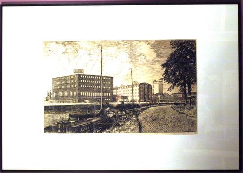 Ets op papier van het gebouwencomplex van de Frico i...