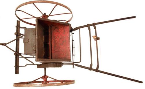 Kunstmeststrooier van hout en metaal gebruikt om akk...