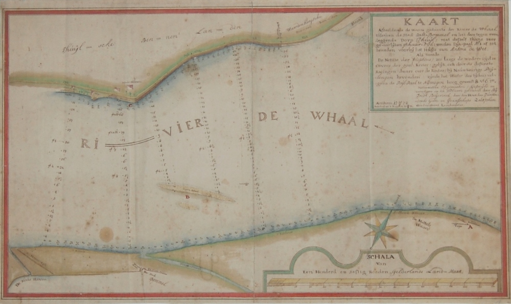 Kaart van pentekening van dijken en waterdiepten Zal...