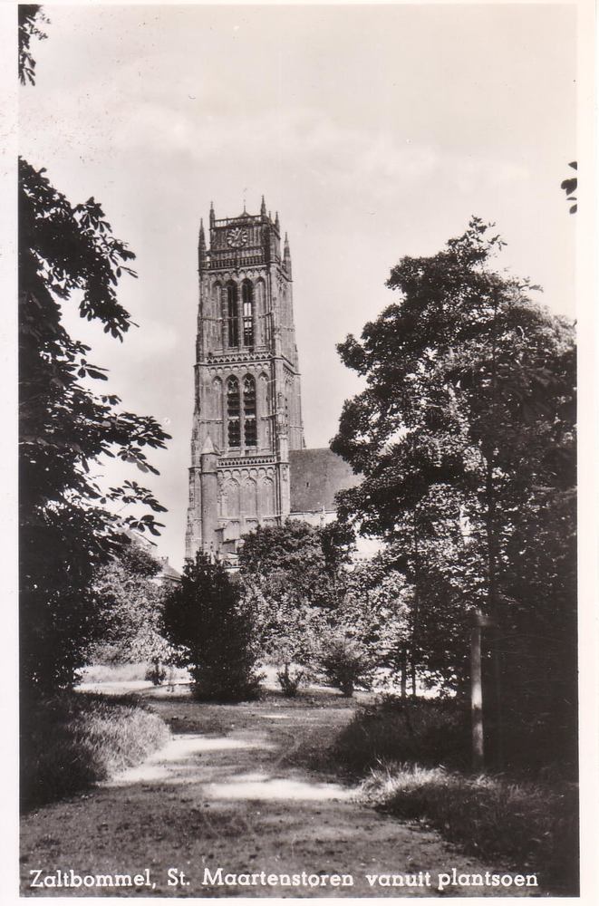Zaltbommel, St. Maartenstoren vanuit plantsoen.