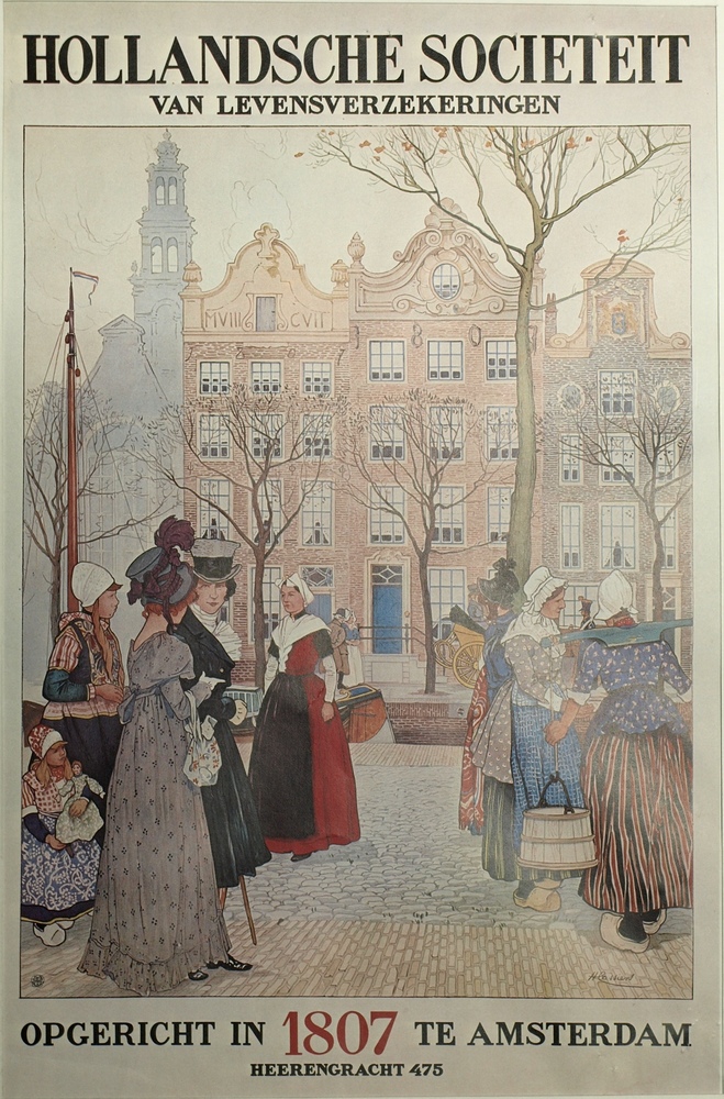 Affiche levensverzekering Oud-Hollandse scène met fi...
