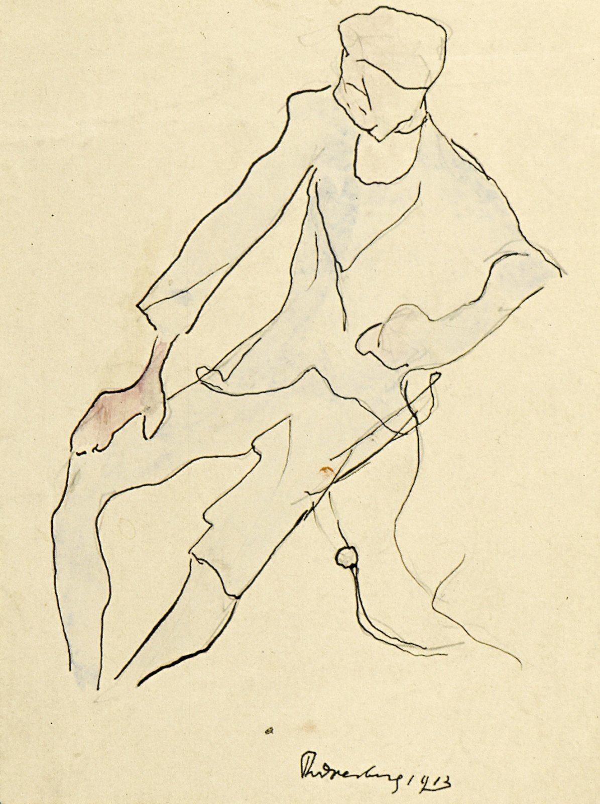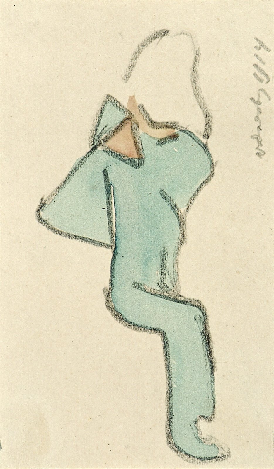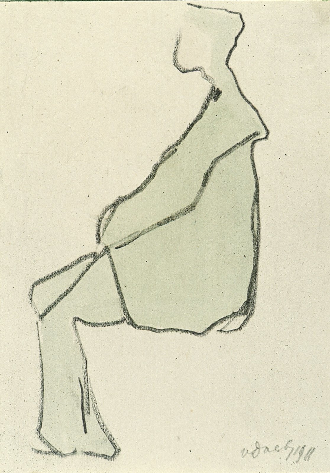 Zittende figuur van opzij gezien