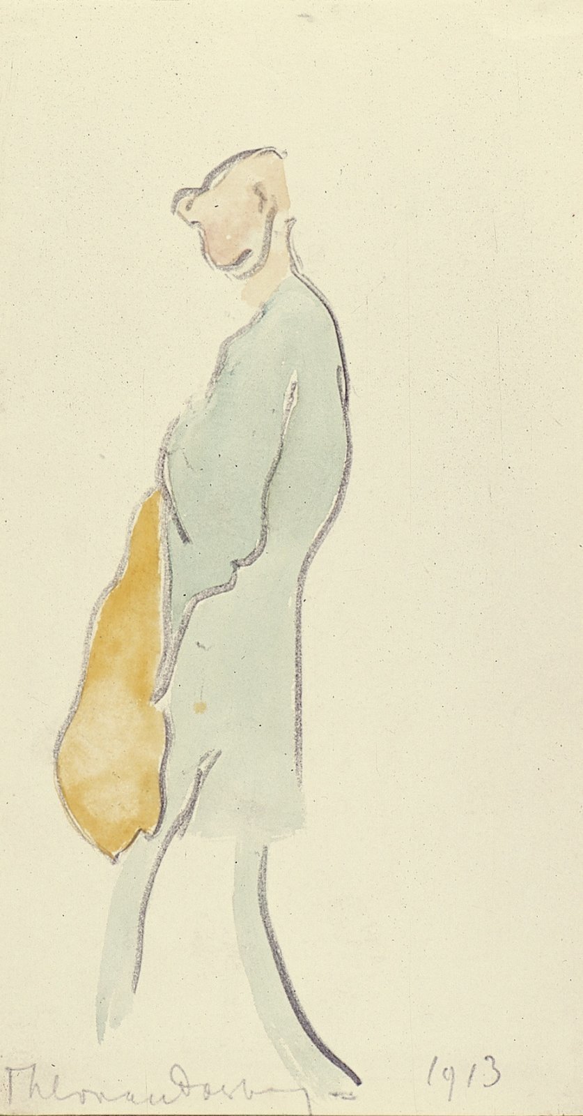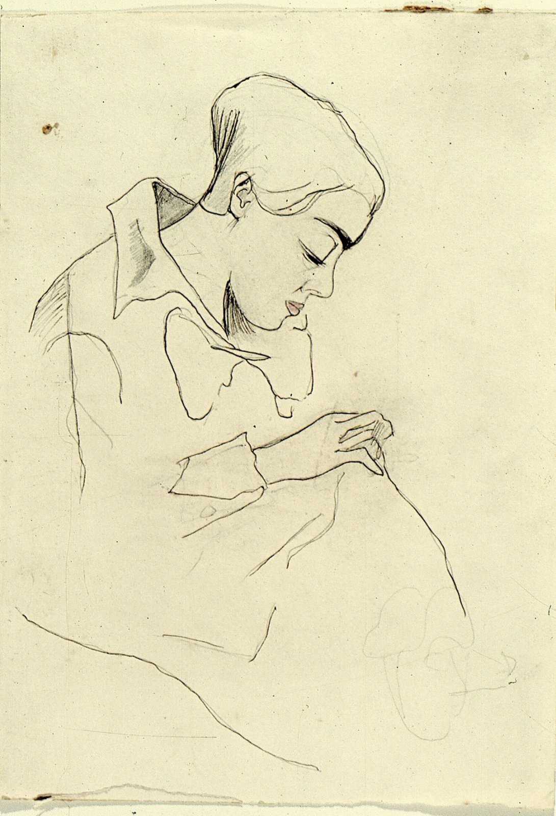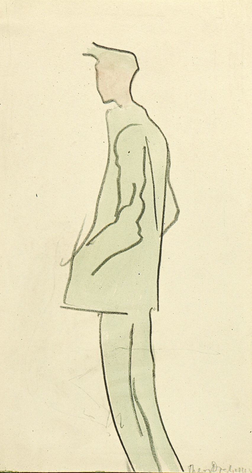 Zittende figuur van opzij gezien