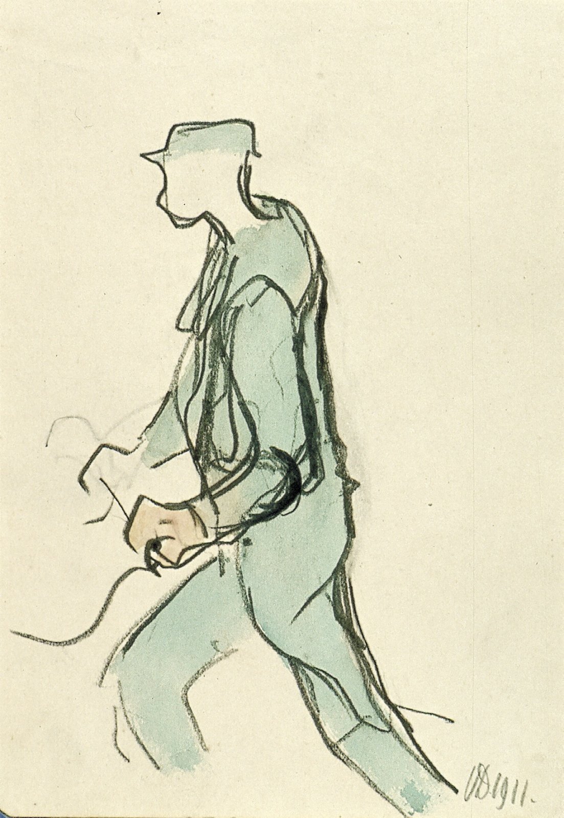 Lopende man met stok