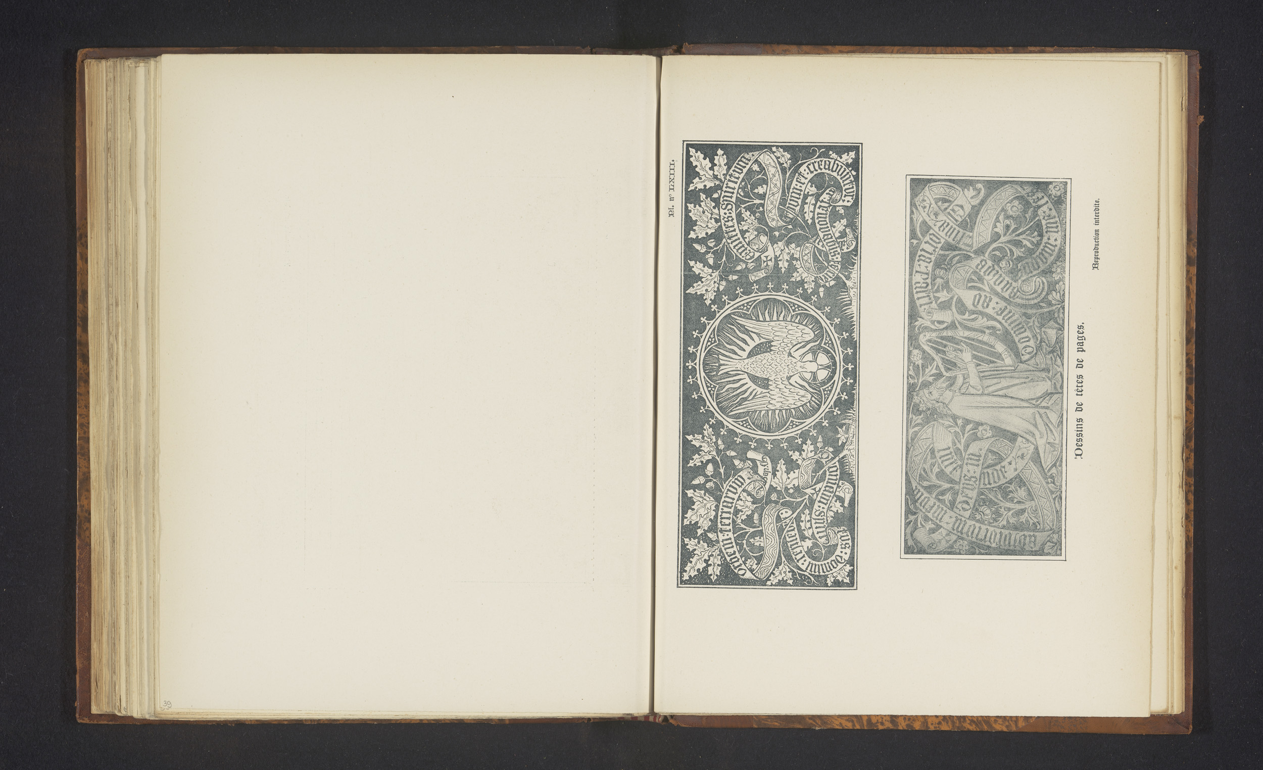 Twee ontwerpen van pagina-hoofden uit boeken, waarva...