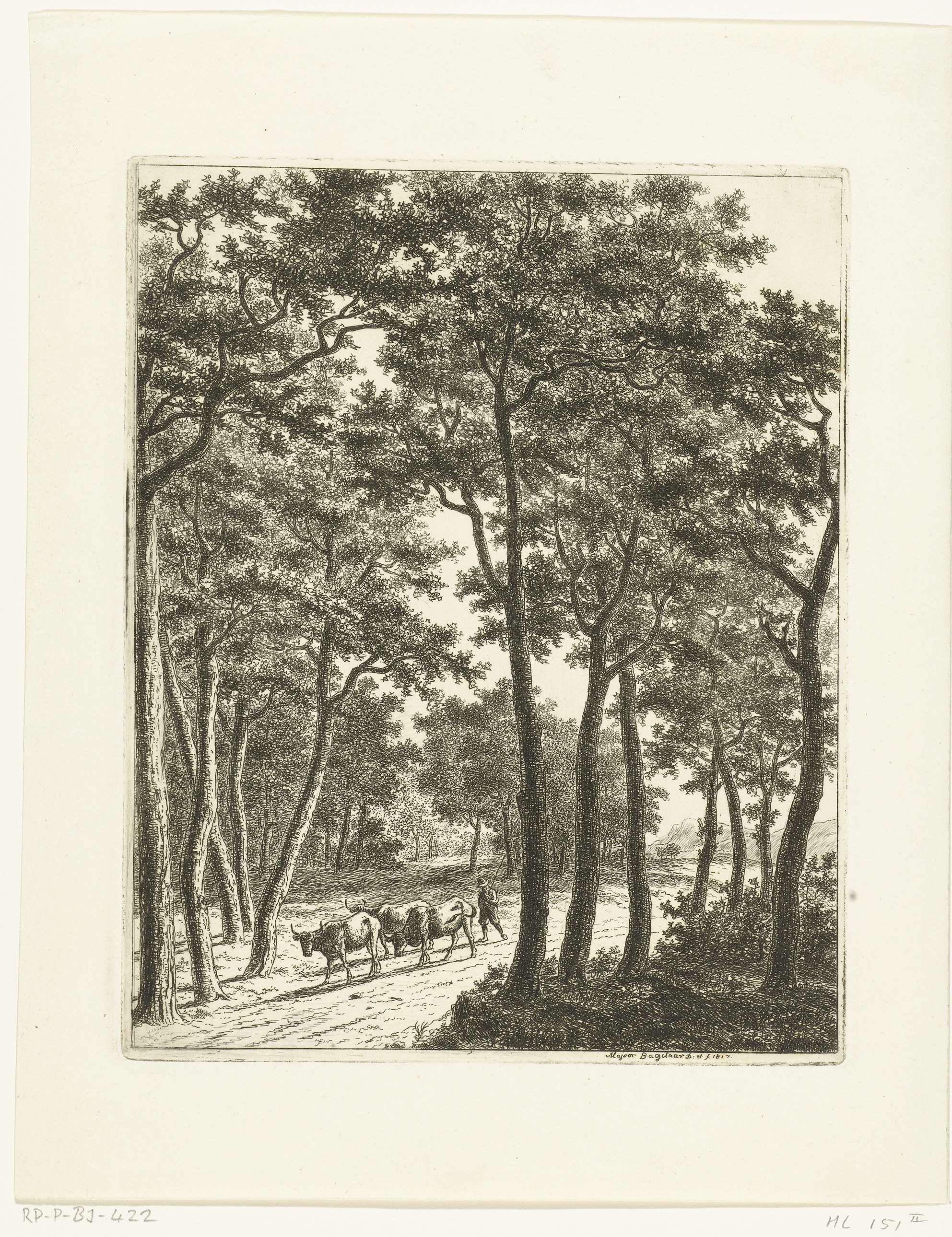 Boslandschap met een herder en drie koeien