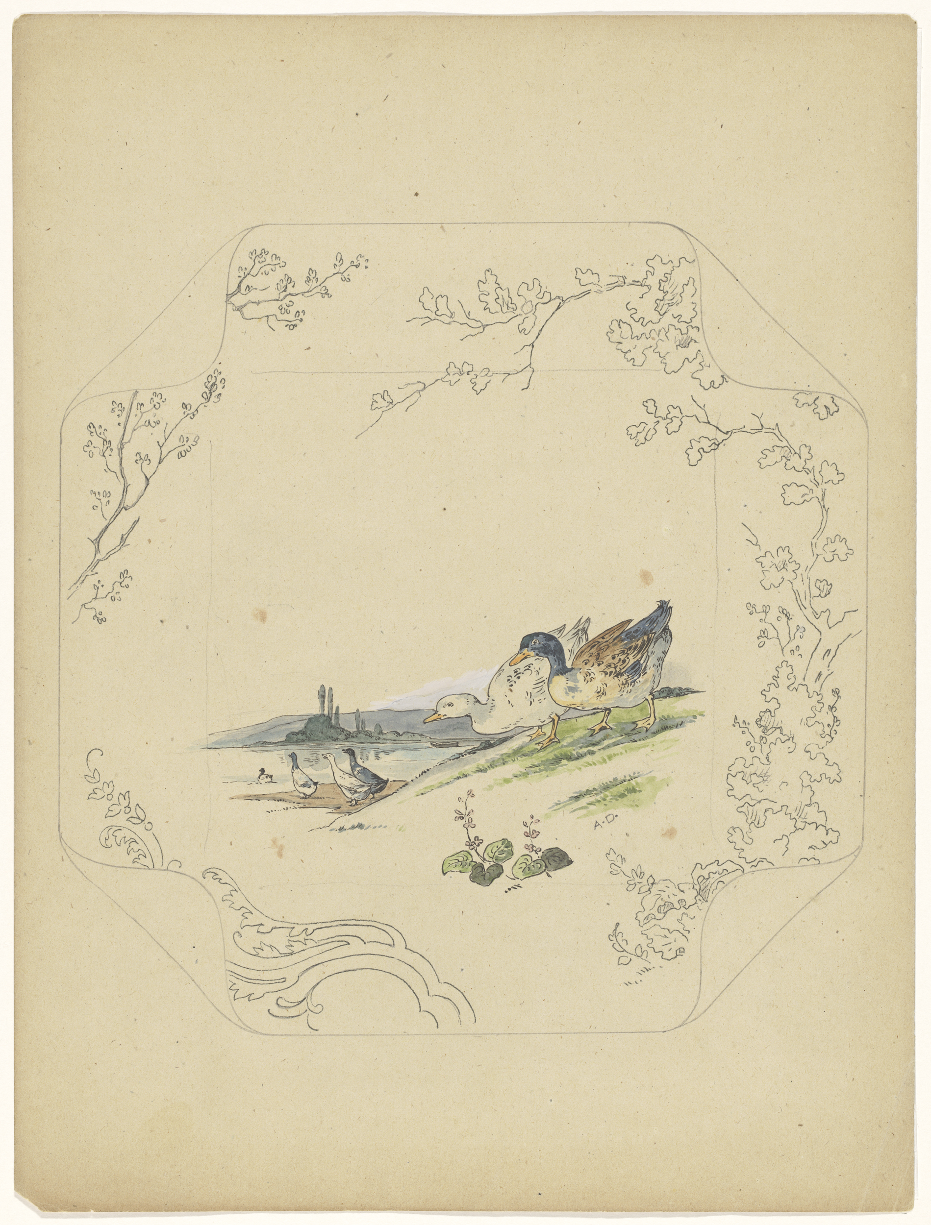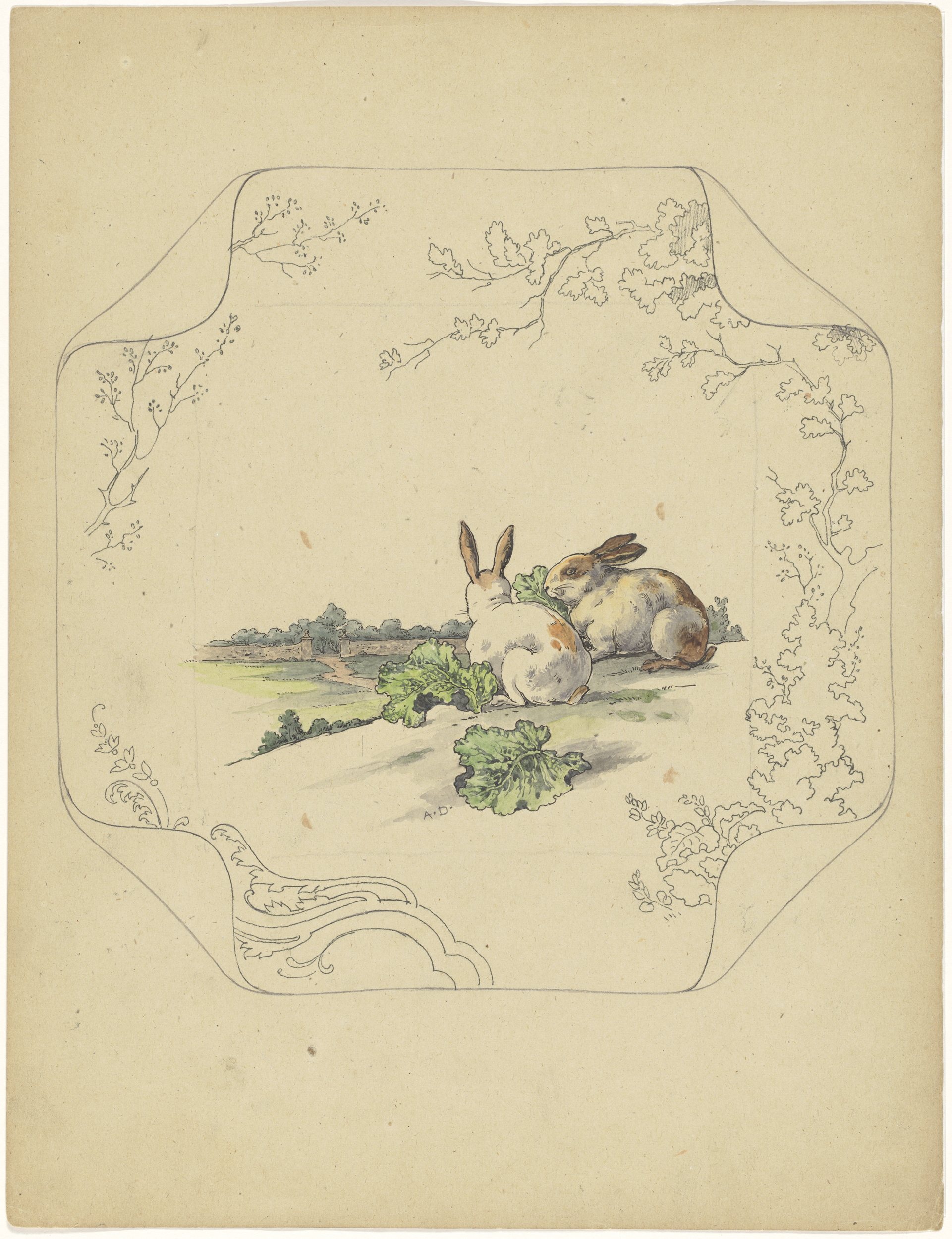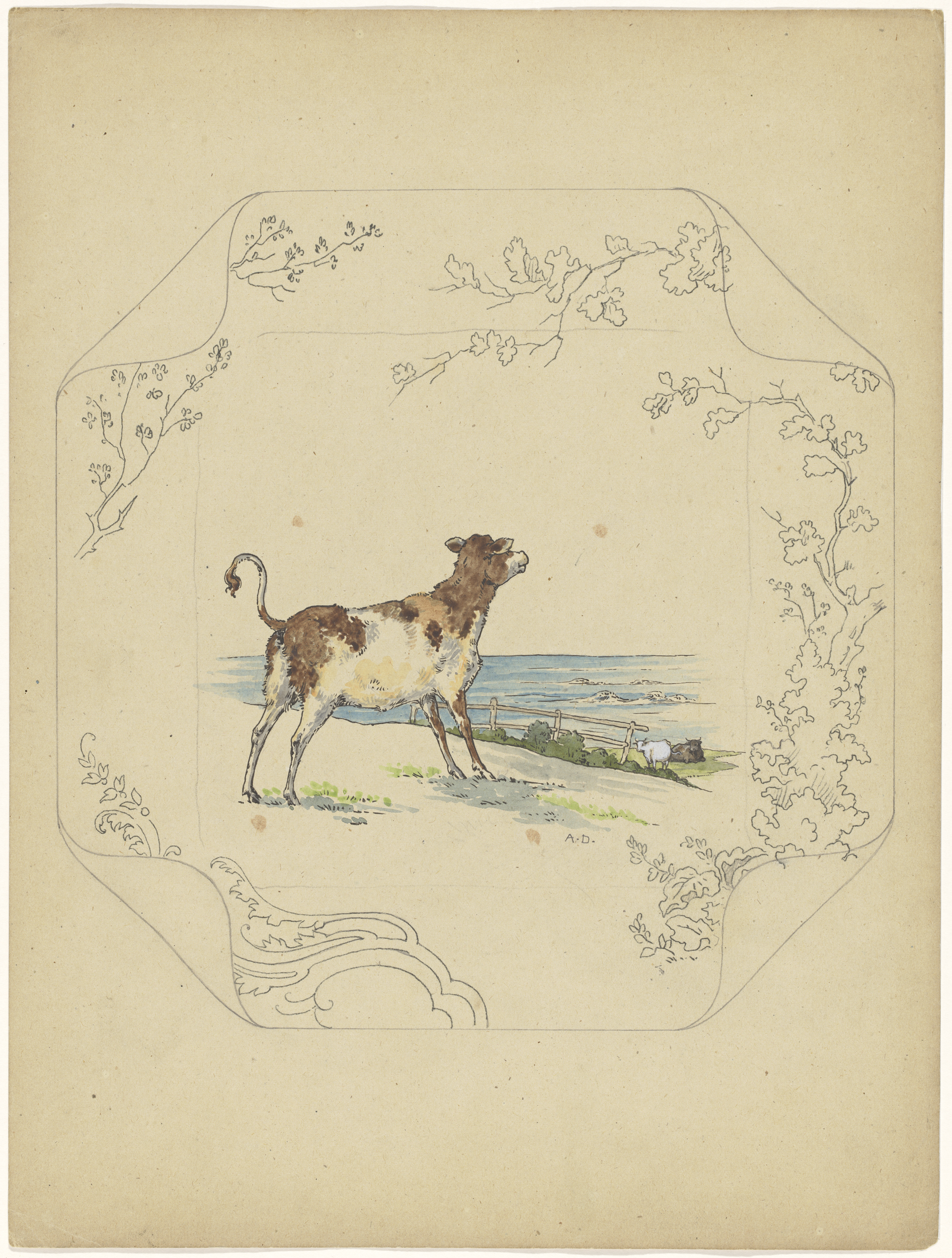 Ontwerp voor bord van het model ‘Square’ met grazend...