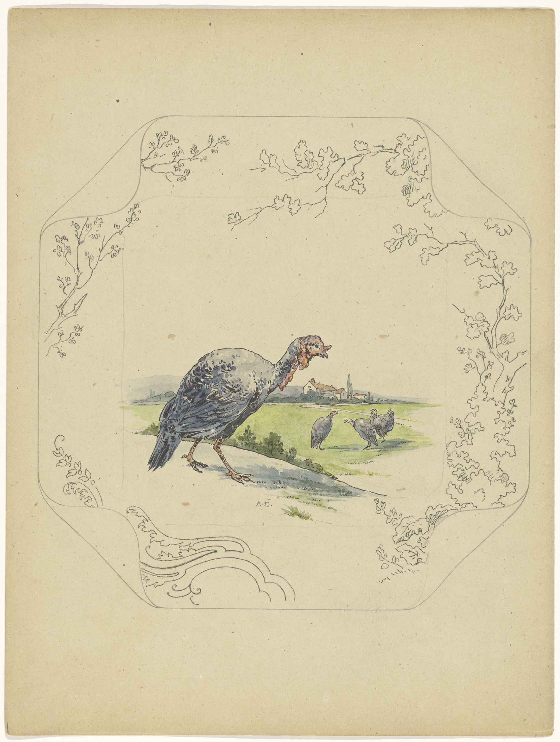 Ontwerp voor bord van het model ‘Square’ met kalkoenen