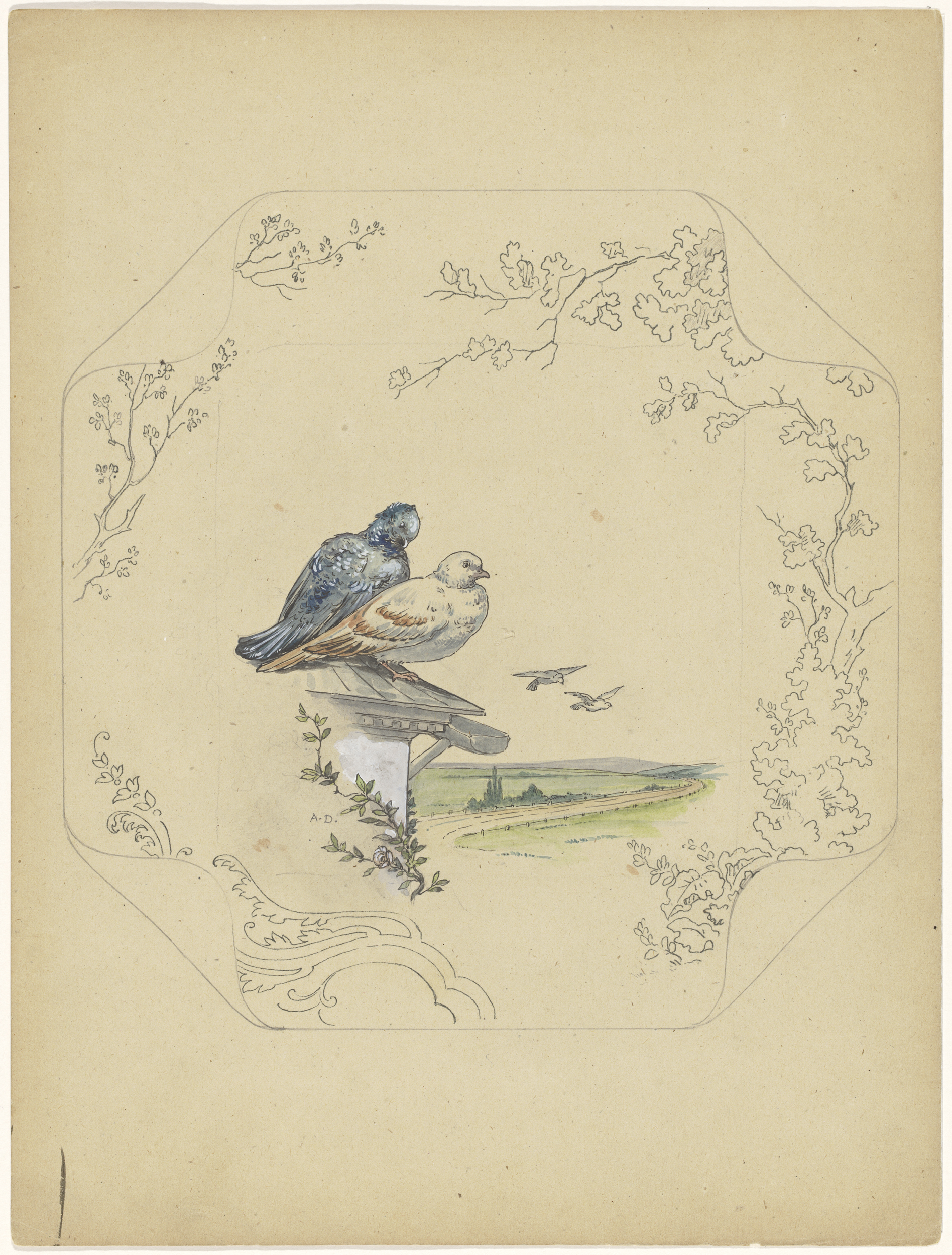 Ontwerp voor bord van het model ‘Square’ met duiven