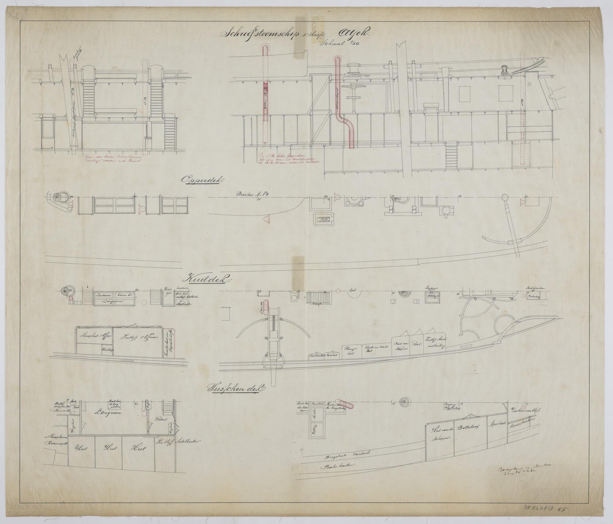 De schoener Zr.Ms. 'Argus', 1881. Tussendek en ruim