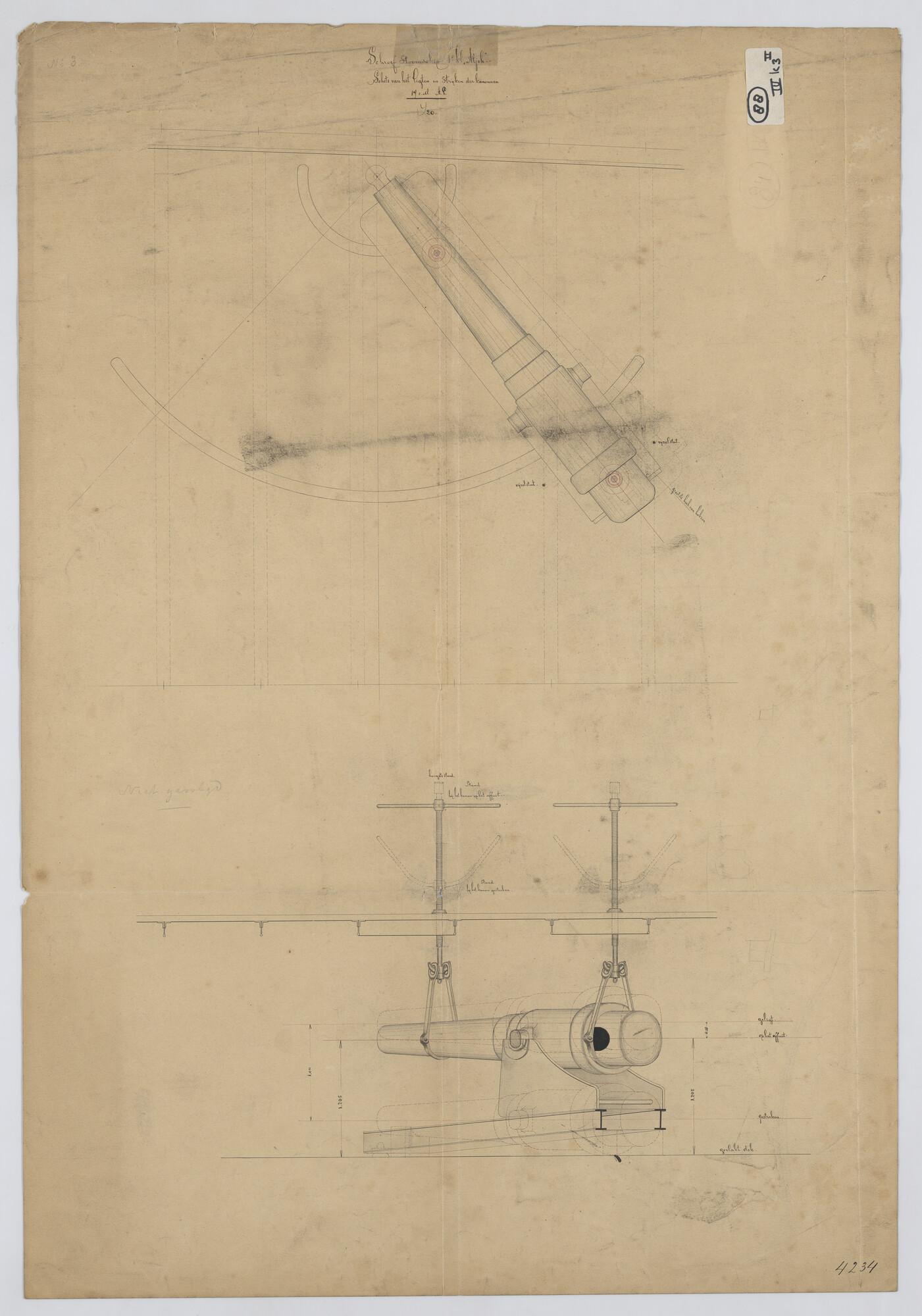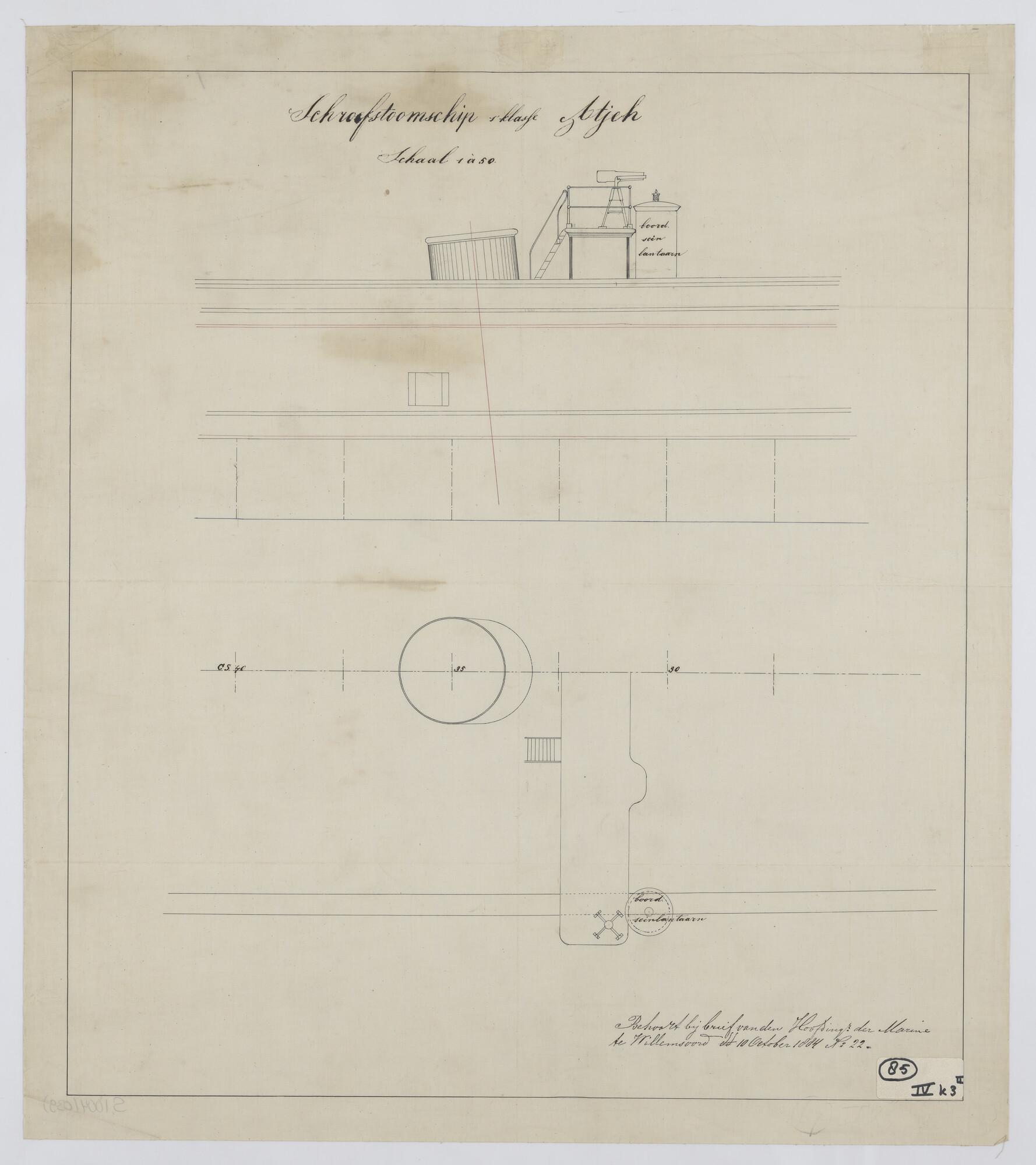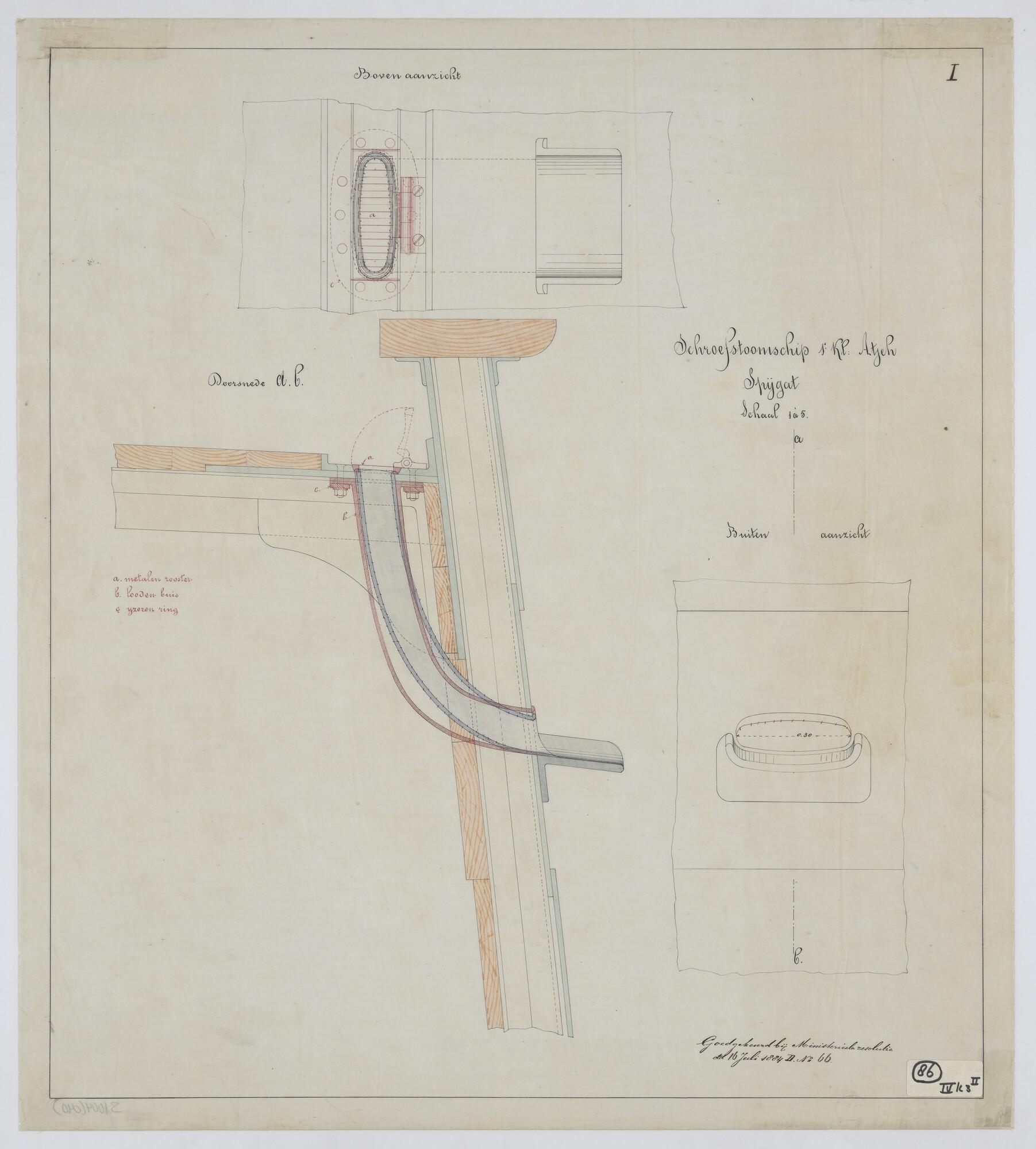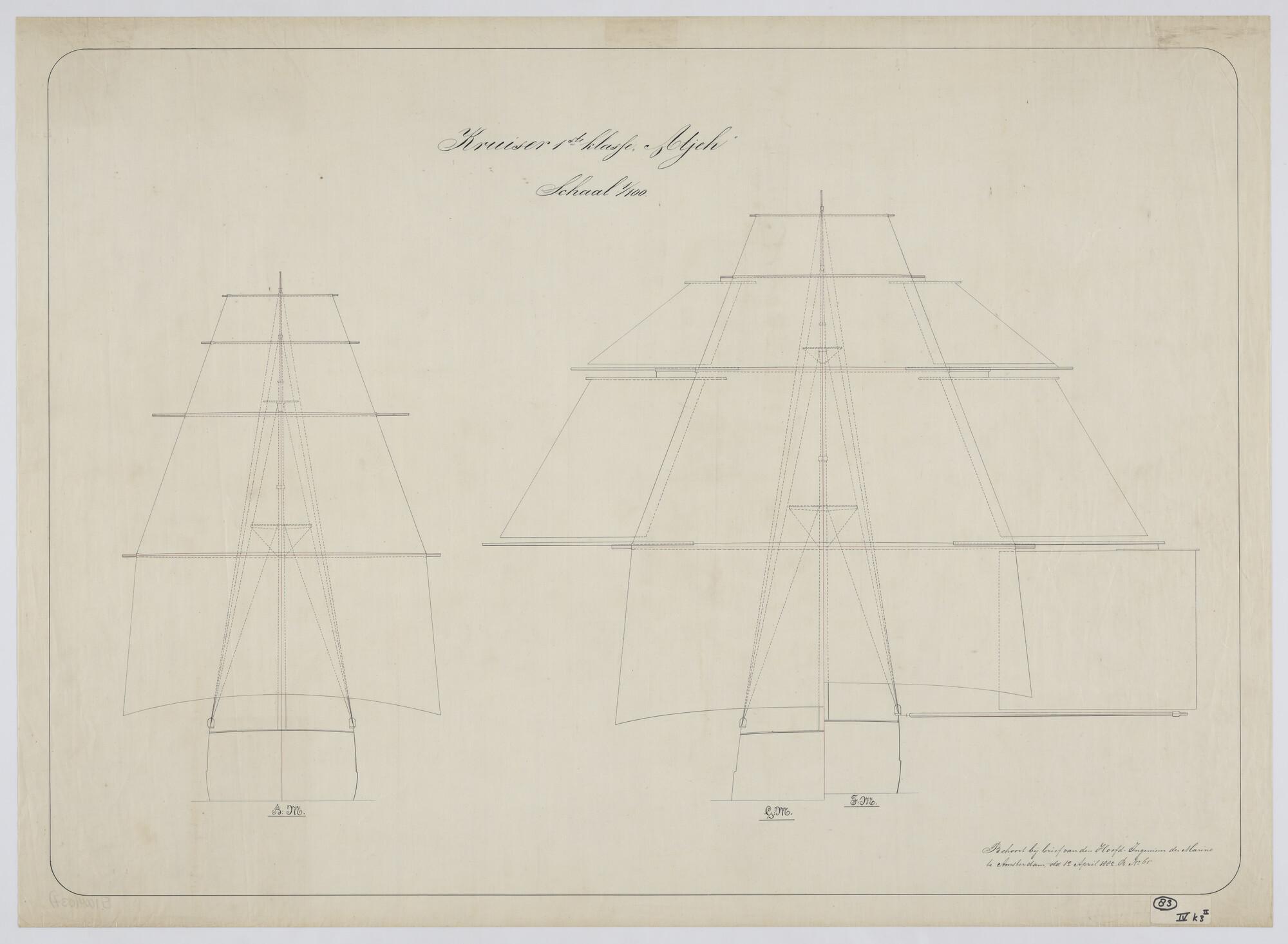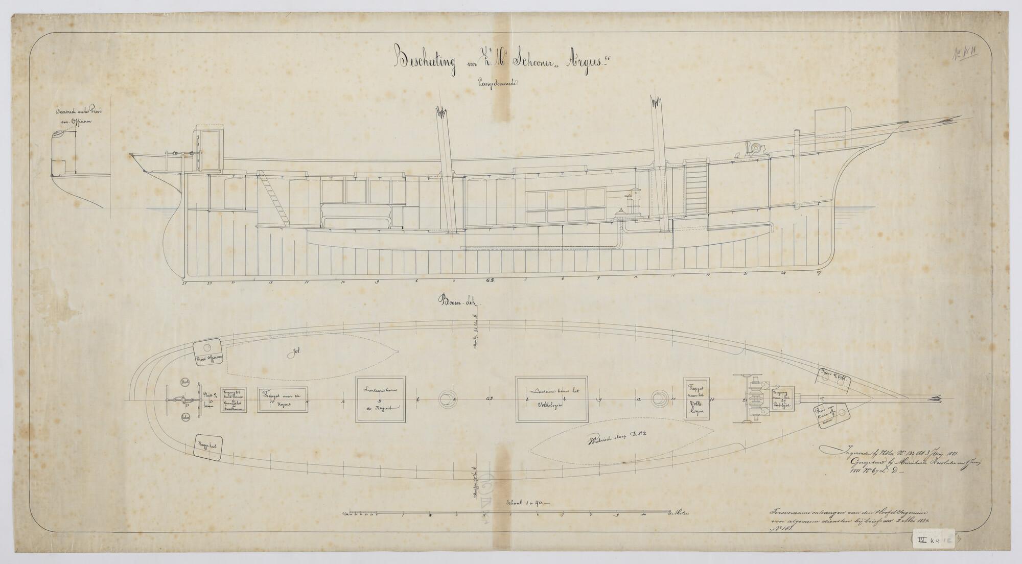 De schoener Zr.Ms. 'Argus', 1881. verticale langsdoo...